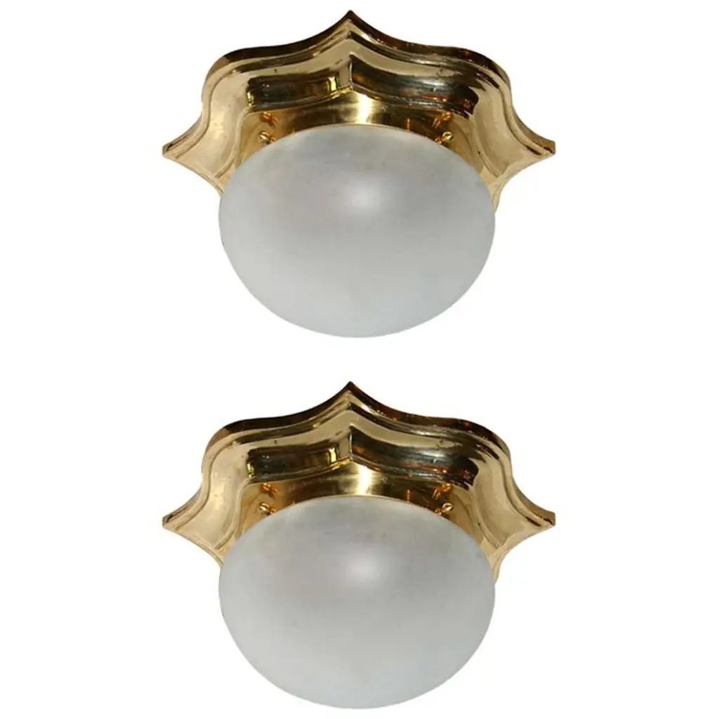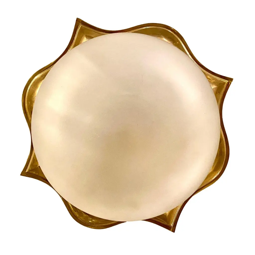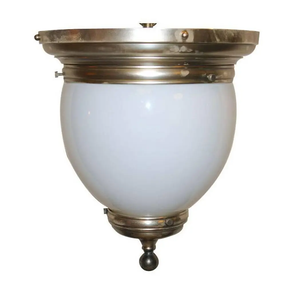 A set of thirteen circa 1940s Italian neoclassic-style cast bronze flush-mounted light fixtures with frosted glass inset and single interior light. Sold individually.Measurements:Diameter 13"Drop 6".