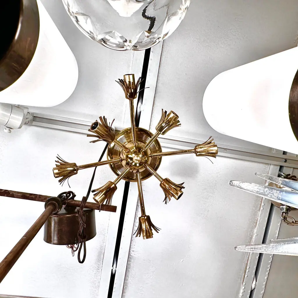 Set of Italian circa 1960's flush-mount light fixtures with eight lights. Sold individually.Measurements:Diameter: 15"Depth: 6"