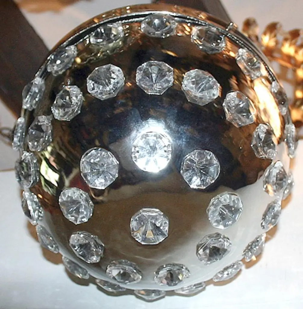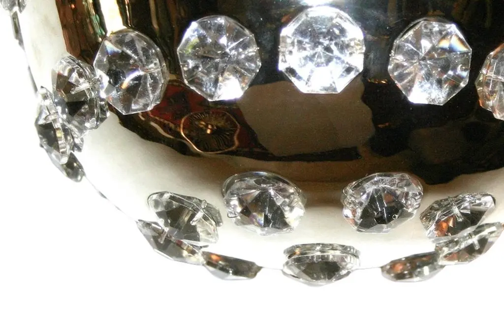 Set of six circa 1940's nickel-plated flush-mounted flush-mounted ceiling fixtures with crystal insets. Sold individually.Measurements:Drop: 10"Diameter: 10"