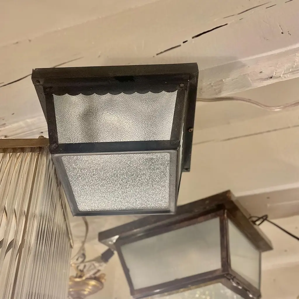 A set of 5 circa 1950's Italian flush light fixtures with 2 interior candelabra lights. Sold individually.Measurements:Height: 5.25"Width: 9.25" square