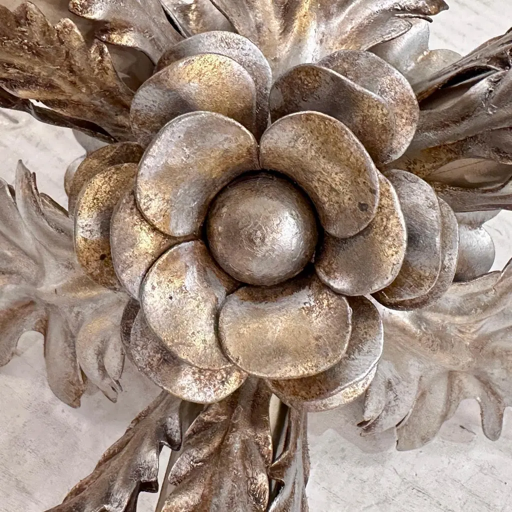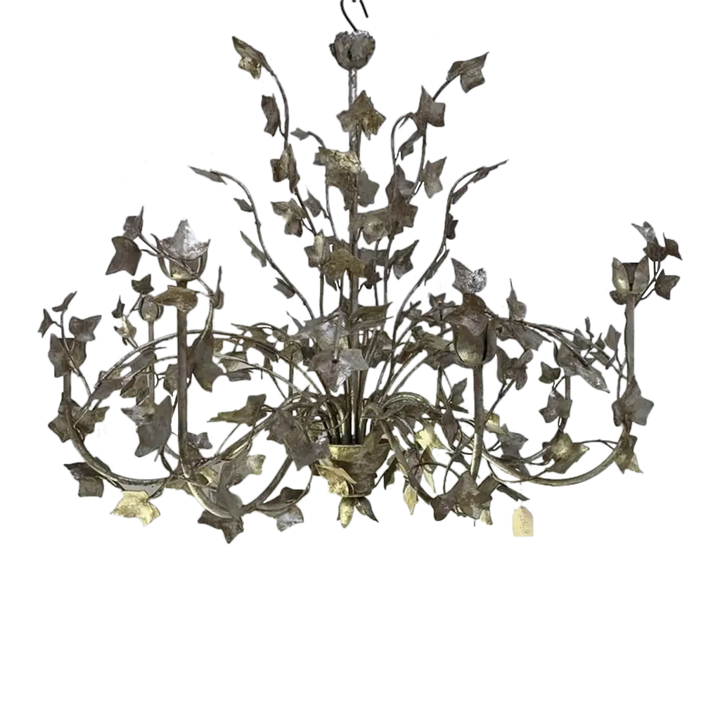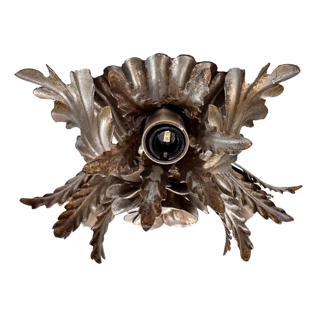 Set of 6 circa 1940's Italian silver leaf light fixtures with 3 lights each. Sold individually.Measurements: Drop: 7”Diameter: 9”