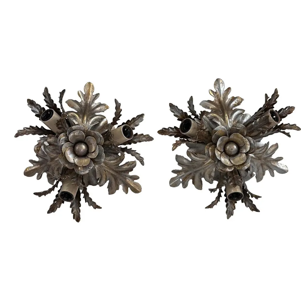Set Of Vintage Silver-Leaf Flush Fixtures, Sold Individually