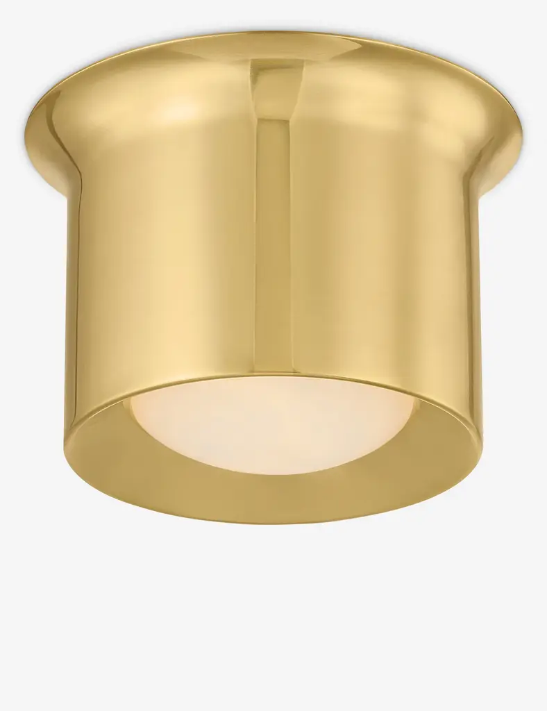 Understated yet design-forward, the Seznec flush mount blends into the ceiling with a sleek, rounded frame. The matte glass shade creates a soft wash of ambient light, perfect for spaces where subtle impact matters. Use this flush mount to bring a polished finish to hallways or bedrooms.