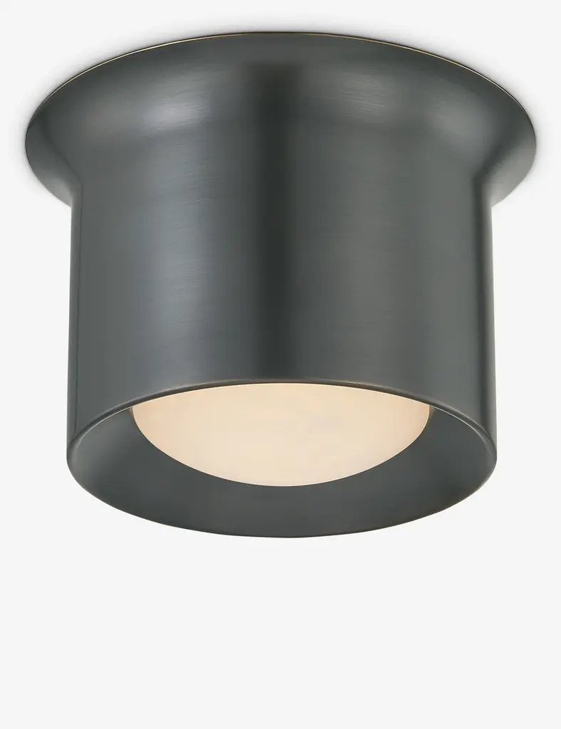 Understated yet design-forward, the Seznec flush mount blends into the ceiling with a sleek, rounded frame. The matte glass shade creates a soft wash of ambient light, perfect for spaces where subtle impact matters. Use this flush mount to bring a polished finish to hallways or bedrooms.