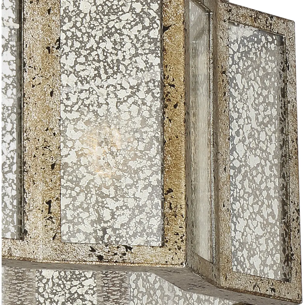 Striking glass accents intensify the Shrine's old-world charm. Beautiful panes of antiqued mercury glass are connected in an accordion-style framework that mimics the angular orientation of the shade's suspension. An aged gold finish is in keeping with the vintage aesthetic and whimsical appeal of this collection.