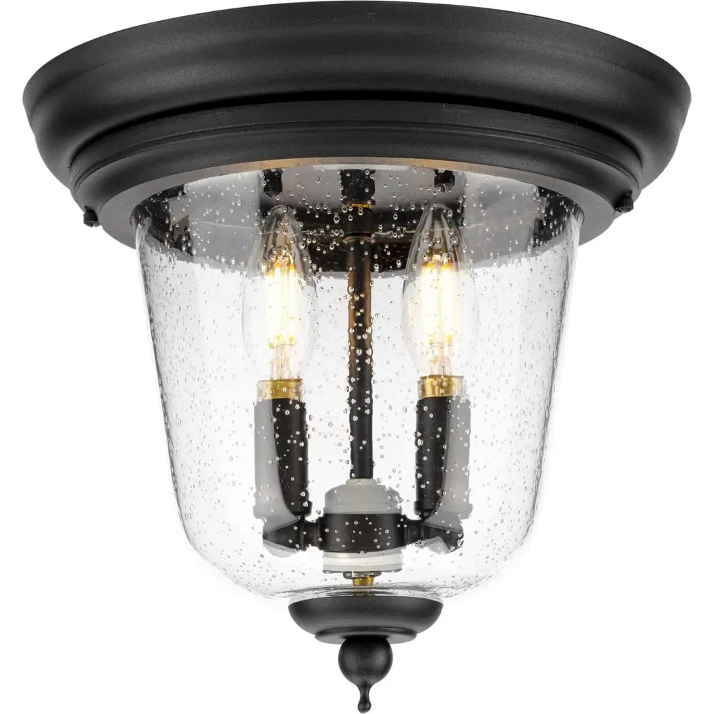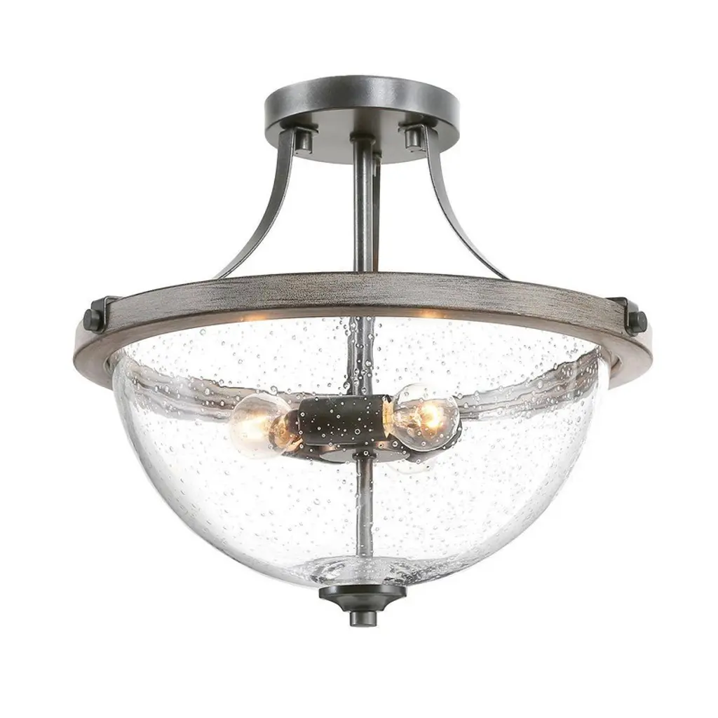 Bring an elegant transitional presence to your interiors with the smooth surfaces and simple design of the Shyloh Flushmount from Minka-Lavery. A broad disc canopy secures the fixture from above, extending a slender downrod below that holds a central hub with damp-listed lamping before terminating in a sleek glass bowl diffuser held in place by a stepped conical finial. This arrangement mutes glare from the sides, transforming it into an even ambiance that suffuses its surroundings.