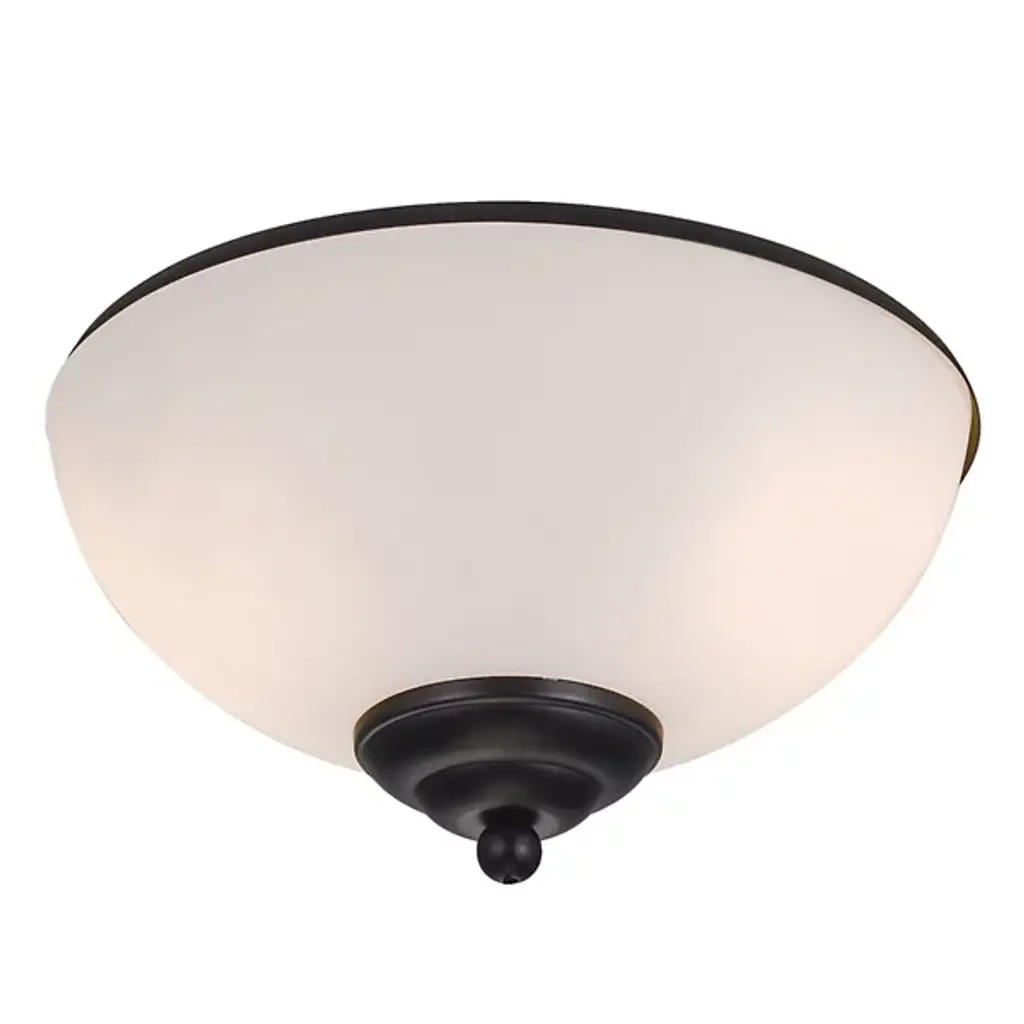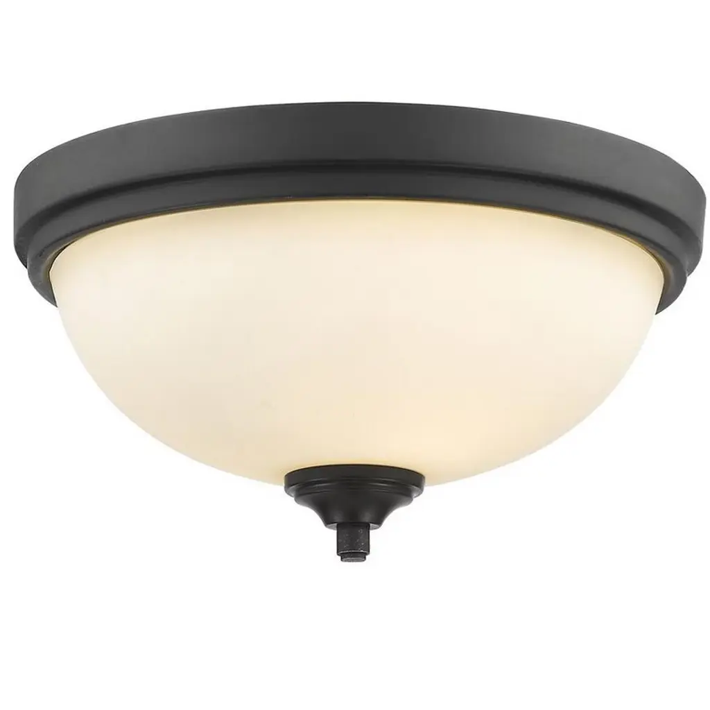 An elegant, understated profile that seamlessly fits with a range of interior decors and settings. The Signature Flushmount by Savoy House showcases a smooth dome shaped shade crafted from etched glass. This shade diffuses light from the 2 halogen lamps (sold separately) housed within to deliver ambient, even glow. This transitional piece is installed flush against the ceiling with a ribbed metal ceiling canopy and is accented at the bottom with a matching finial detail.