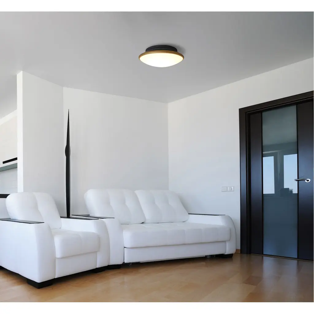 The Silk ceiling fixture collection is comprised of a matte etched Opal bottom European diffuser accented with a black upper cap and fitter. The result is an appealing contrast created from the soothing illuminated opal against the appearance of a spun metal cap, which is actually an artistically finished portion of the glass diffuser.