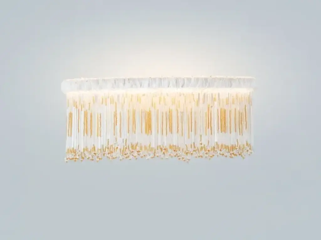 A beautiful harmony of luxurious silk and geometric design. The Simon Says Maybe Wall / Flushmount by Aqua Creations brings a sophisticated flair to your home. The rectangular frame is made from mahogany wood that provides a neat, clean look. Designed by Albi Serfaty in 2014, it features handcrafted silk with textured lines for a characteristic look. This modernist-inspired fixture can be fixed to the wall or ceiling to provide optimal lighting and abundant style.