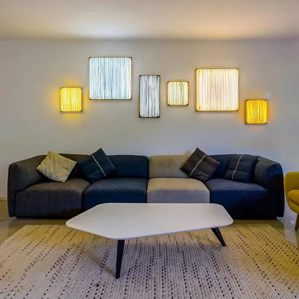 The Simon Says No Wall / Flushmount from Aqua Creations enhances compact and open spaces alike with a blend of artisanal charm and nature-inspired softness. This unique piece is handcrafted in Aqua’s Israeli studio and features a CNC-milled hardwood frame and a lightbox encasing the inner lamping. Crushed silk shades gracefully drape over the lightbox, with their individual irregularities adding lively character to the design and ensuring no two are alike. This fixture radiates warmth and can be displayed as a standalone piece or in a coordinated set.