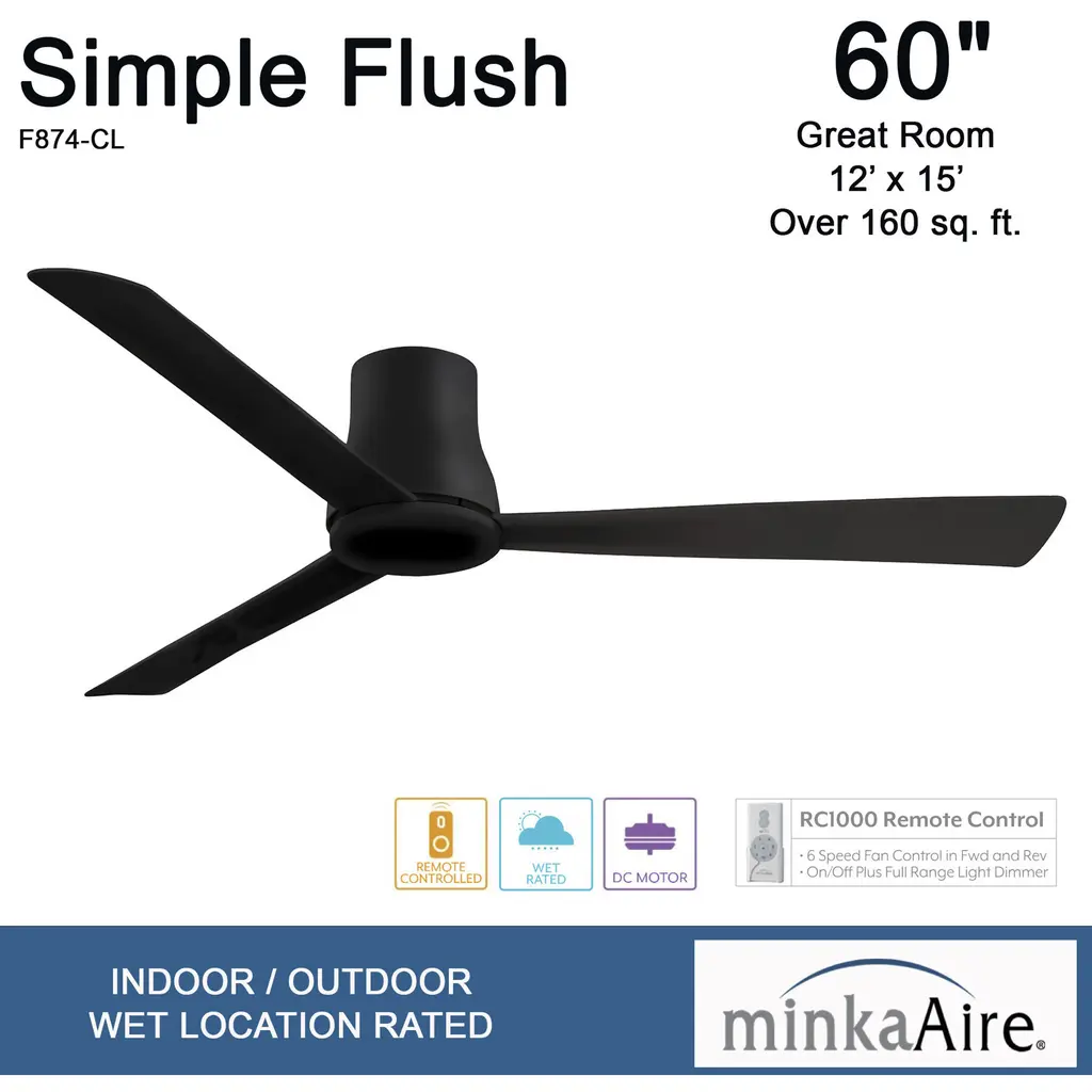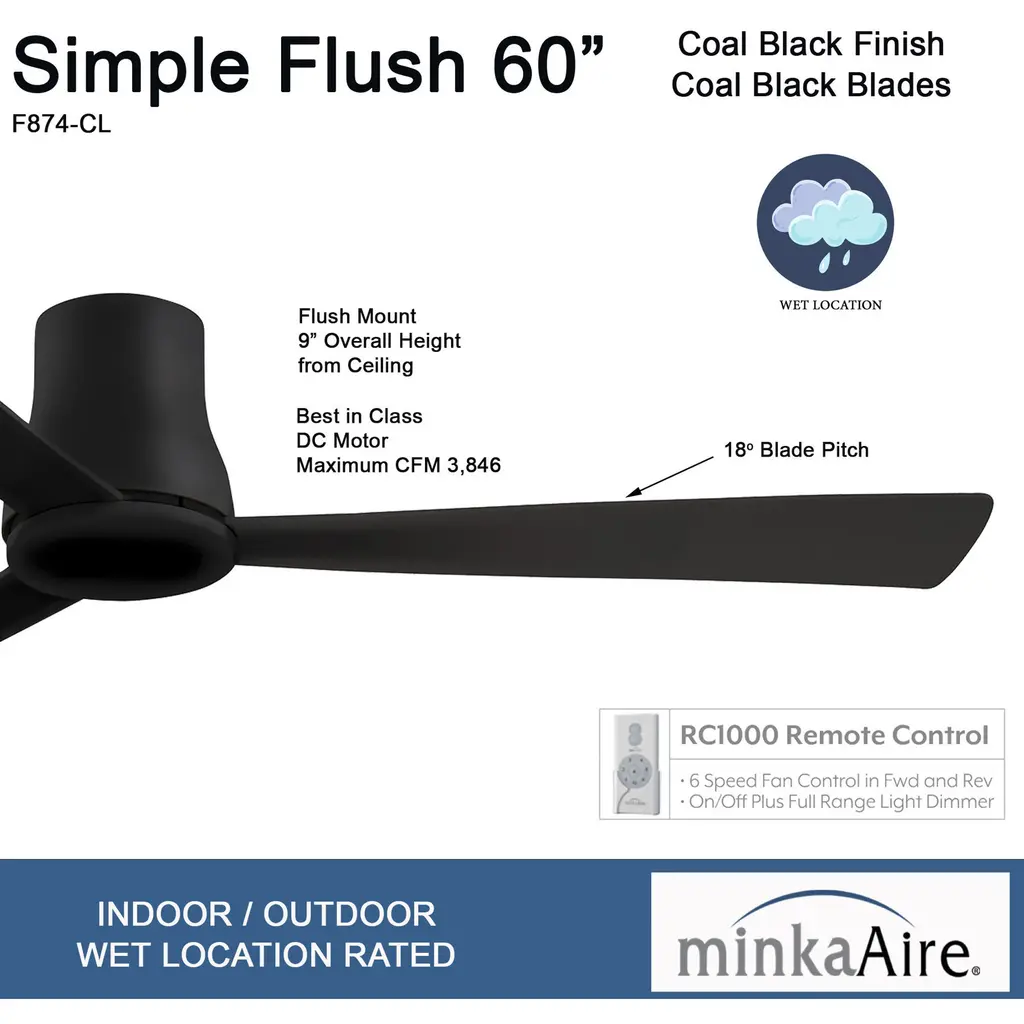 This Outdoor Hugger Fan from the Simple Flush collection by Minka-Aire will enhance your home with a perfect mix of form and function. The features include a Coal finish applied by experts. This item qualifies for free shipping!