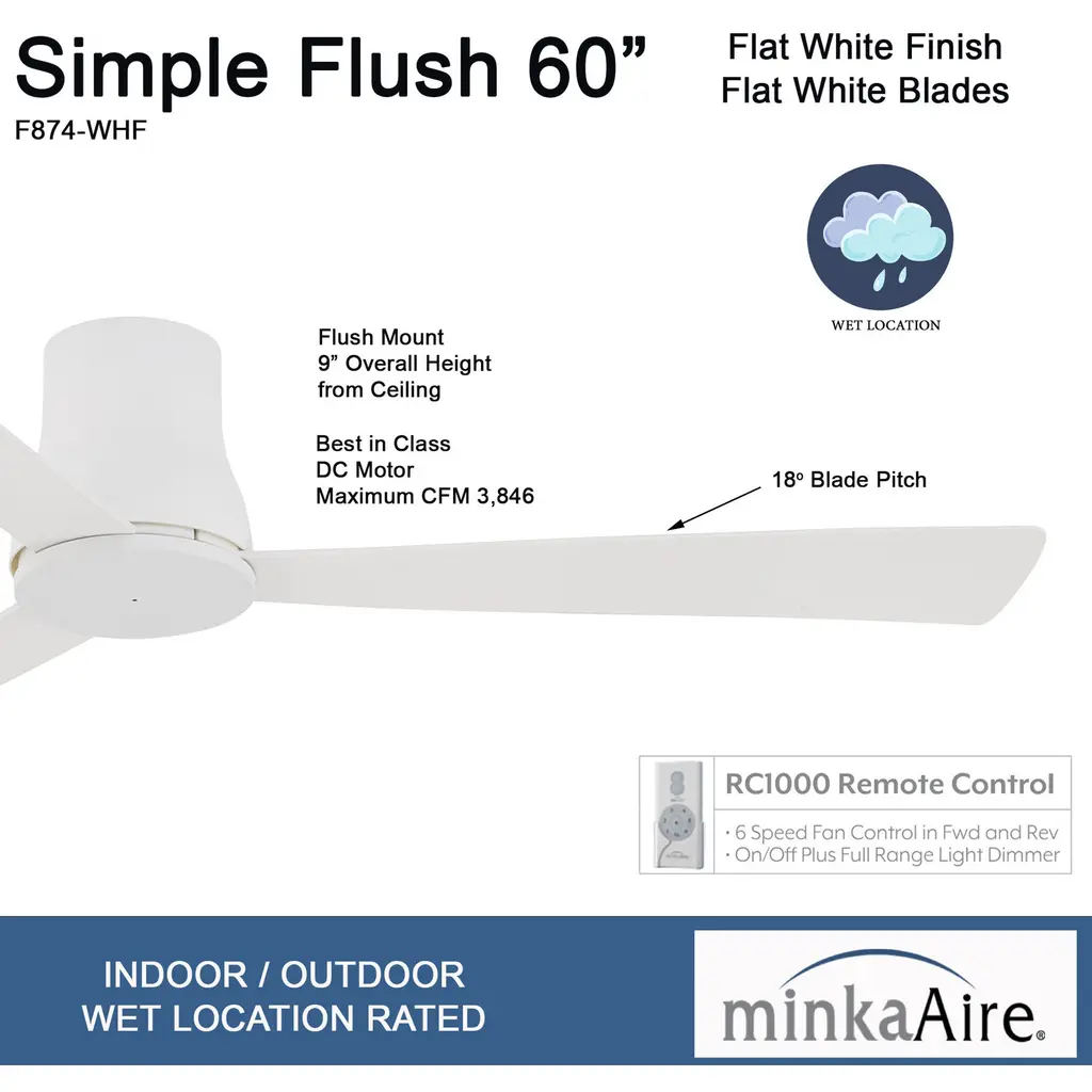 Simple Flush 60 Inch Flat White Outdoor Hugger Fan