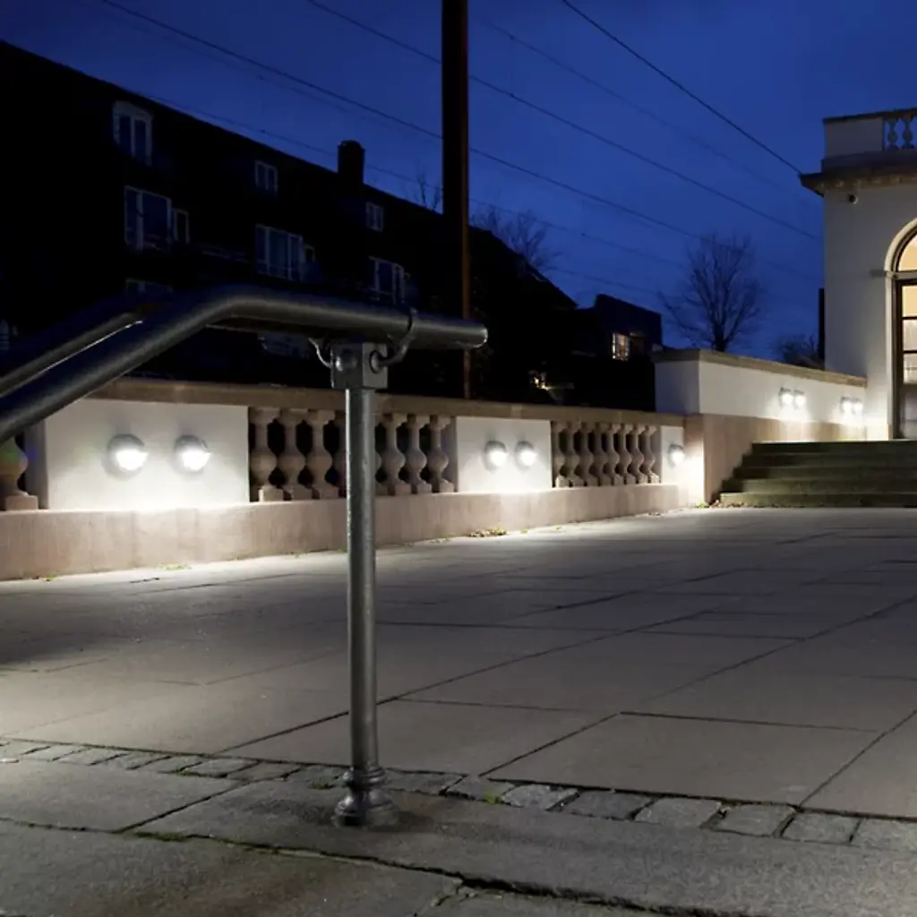 Lauritz Knudsen designed the Skot Outdoor Wall / Flushmount for Louis Poulsen upon, in the late 1890s, seeing the advent of electricity. The Skot Outdoor Wall / Flushmount from Louis Poulsen is the modern evolution of the classic industrial piece. Originally designed to withstand the elements at sea, its crossed die-cast aluminum construction protects its lighting with a distinct maritime style. Cutting-edge LEDs behind a polycarbonate dome showcase the progression of lighting since the 1900s. It is neat ambient lighting, distinct in design, and ideal in industrially furnished homes.