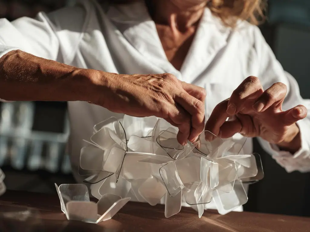 Clizia Mama Non Mama is an ode to joy, femininity, primordial love, and pure emotion. Once illuminated, the lamp’s delicate details create plays of light that together cast a positive aura. Handcrafted from interlocking Cristalflex petals, all three sizes have a magnetic system. The light, delicate petals bring a soft breeze of balanced allure into any interior.Size: Ø 53 cm x 20 cm / 20-3/4” x 8”Colors: Mama non mamaMaterials: CristalflexWith: MagneticSystemLight source: Bulbs E27: 2 x 12W LED Filament.