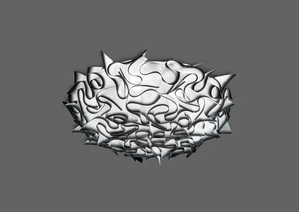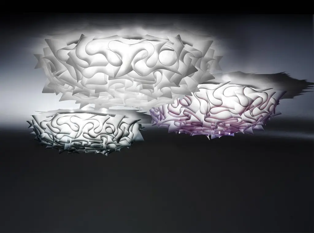 Inspired by the high fashion world, where folds, pleats and soft structural shapes reign, Veli is a sophisticated, glamorous collection featuring a series of handcrafted elements carefully connected in a sinuous, elegant design, mounted on a magnetic system. Veli’s varying colors and forms add value to any interior. E27 lighting. Made with Opalflex.This item is compatible only in the United States and Canada. For customers located outside of these regions, please inquire for availability in your area. Also available in other variations on 1stdibs including size, color, and material. Please inquire for more information on those variations.Size: Ø53 x h. 20 cmColors: BlackMaterials: Opalflex®Lighting: 2 X 12W E27 LED Filament BulbsWeight: kg 1,25Dimmerabile: dimmable bulbs needed, depending on wall dimmer