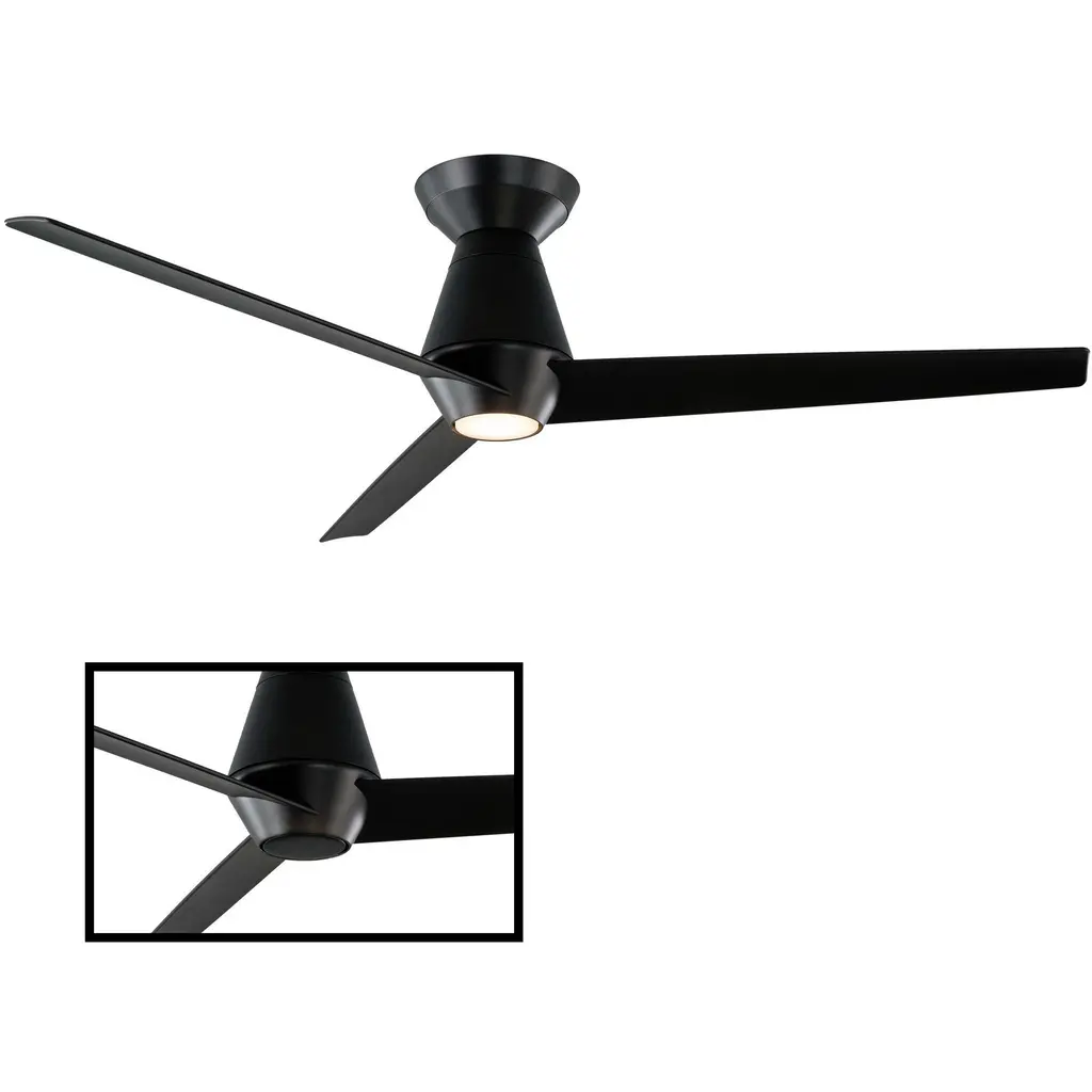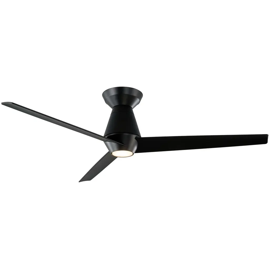 Slim 52 Inch Matte Black Flush Mount Ceiling Fan In 3000k, Smart Ceiling Fan