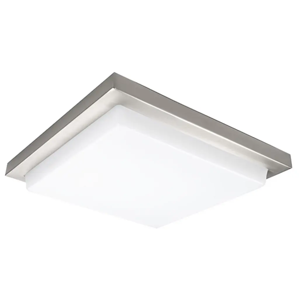 Multi-layered flushmount lighting. The AFX Lighting Sloane LED Square Flushmount is a low-profile design, but mixes things up a bit with its unique 3-tier frame. Diecast out of 22-gauge Steel, such layering gives the otherwise thick frame a welcome sense of lightness and visual interest. It houses a powerful and energy LED module, the light of which is diffused into an even, glare-free wash of downlight by a specialty White Acrylic lens. This ceiling light is a great option for adding bright, useful light and a sophisticated design element into modern kitchens, offices and, since it’s rated for use in damp locations, even bathrooms.