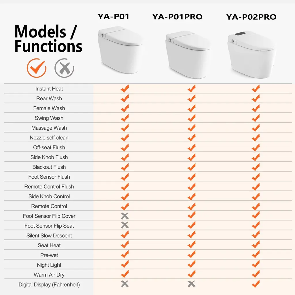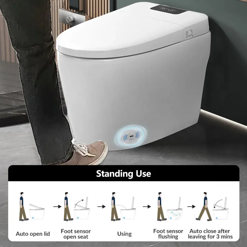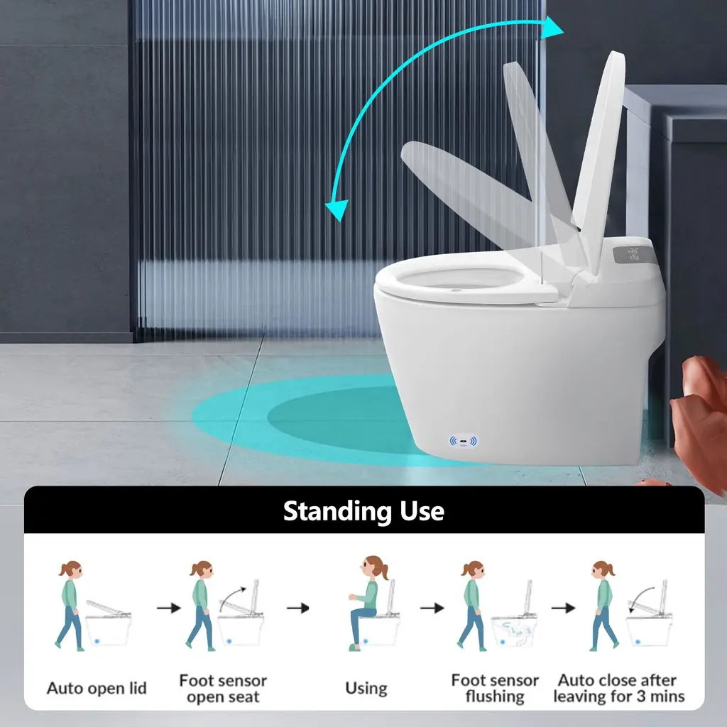 YNSTP02PRO Smart Toilet Bidet Combo with Foot Sensor Open Cover/Seat, LED Display, Self-Cleaning Nozzle, Heated Seat, Night Light, Knob Control, Power Outage Flushing, Soft Close, Auto Flush, with Remote Control