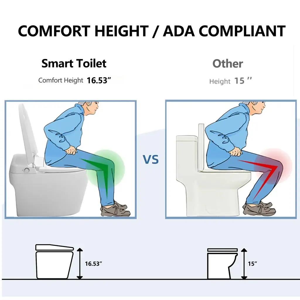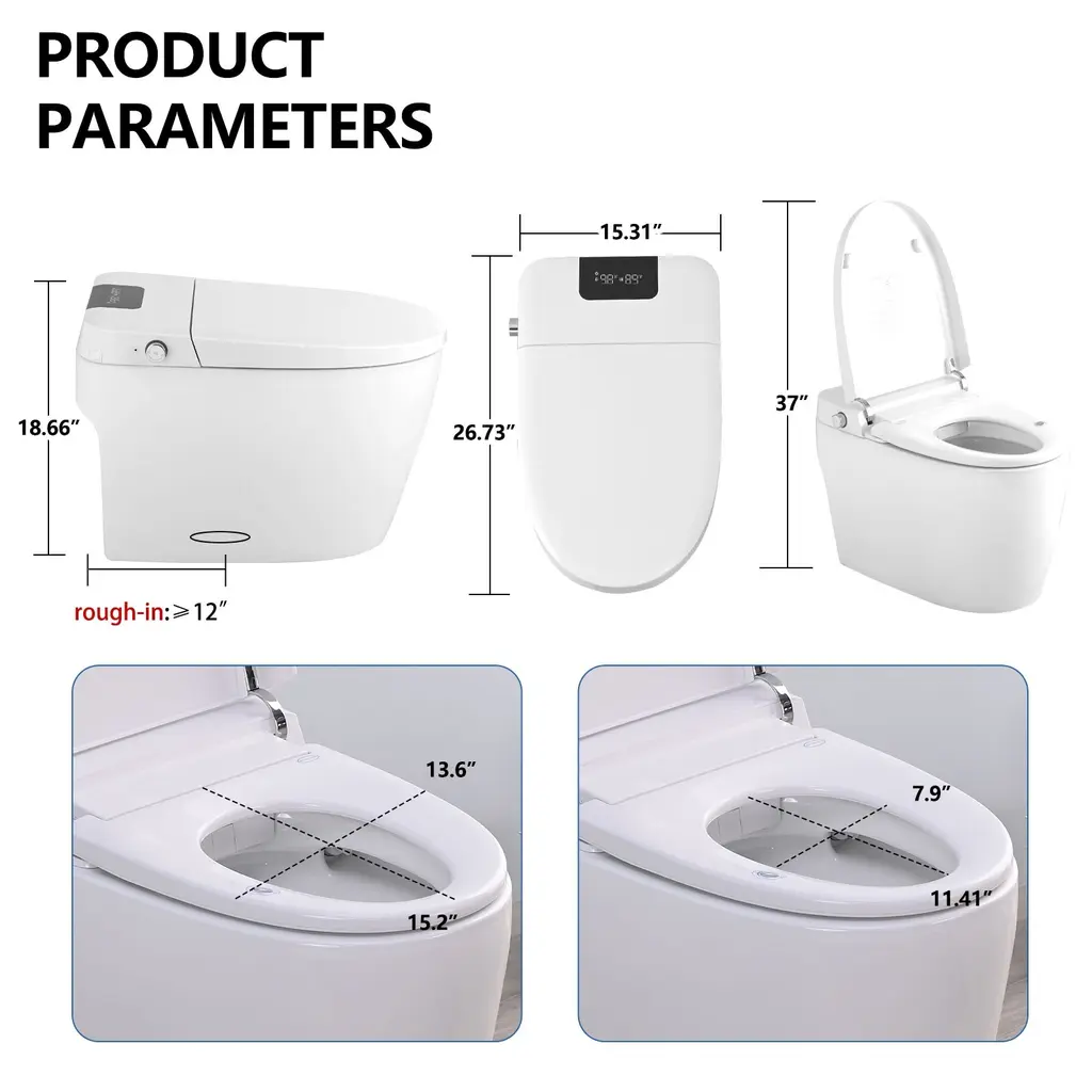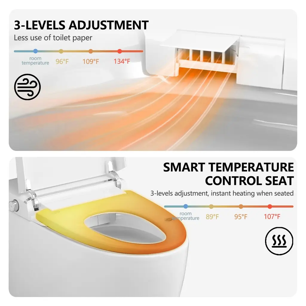 YNSTP02PRO Smart Toilet Bidet Combo with Foot Sensor Open Cover/Seat, LED Display, Self-Cleaning Nozzle, Heated Seat, Night Light, Knob Control, Power Outage Flushing, Soft Close, Auto Flush, with Remote Control
