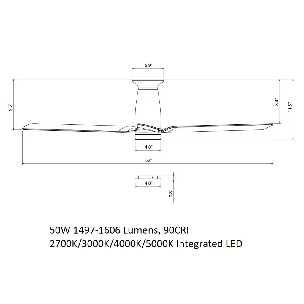 The Smooth Indoor/Outdoor Flush Mount Ceiling Fan from Modern Fans offers a refined solution for low ceilings and compact spaces. Its 52-inch sweep features three elegantly curved blades that blend seamlessly into the housing, delivering a cohesive and sophisticated profile. An integrated LED light with an opal lens provides warm, ambient illumination, while a removable cover allows for a sleek, light-free option. Designed for both indoor and outdoor use, this fan combines minimalist aesthetics with practical performance, making it an expert choice for modern environments. Highlights Remote Included