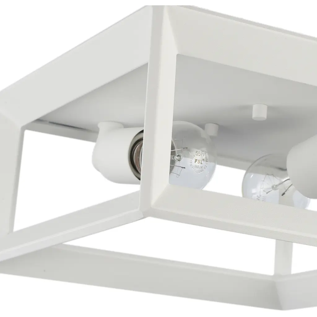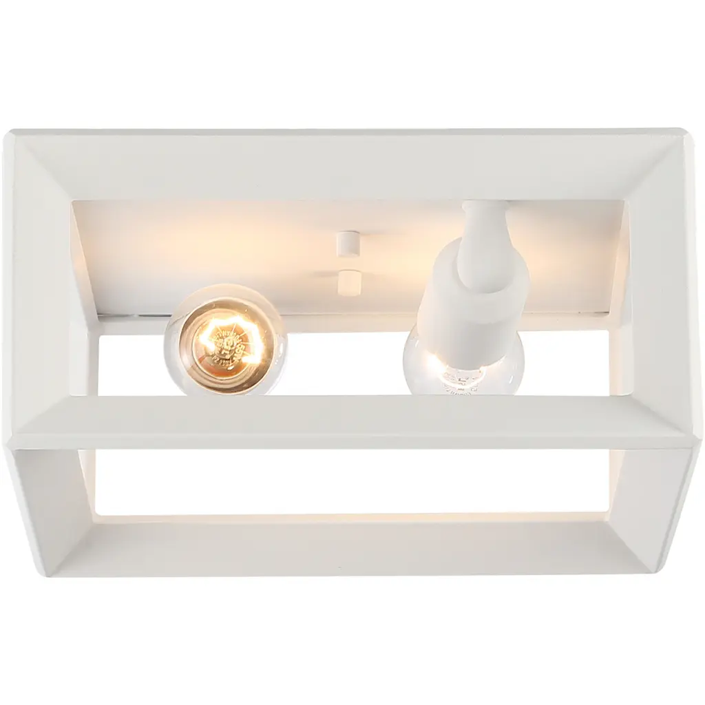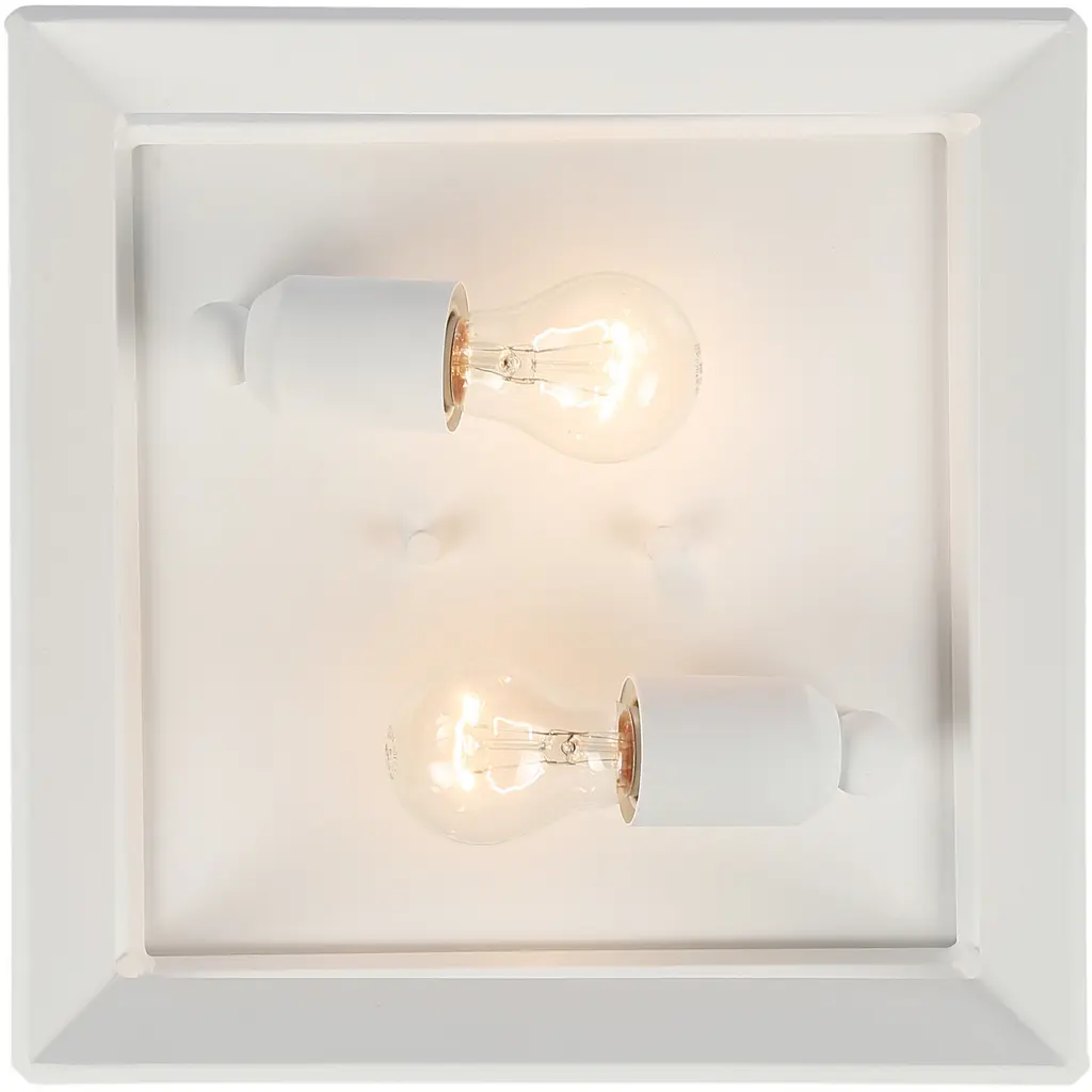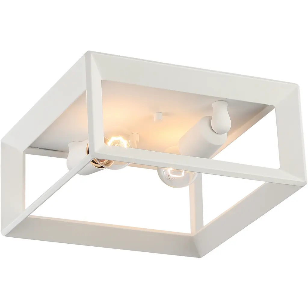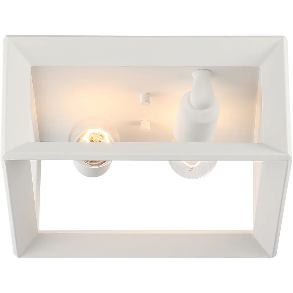 Bring transitional elegance into your home with the Golden Lighting Smyth 2-light Flush Mount. Featuring a sleek exterior and a Natural White frame, it creates a welcoming atmosphere. This fixture's minimalist design showcases its clean, geometric lines, enhancing its timeless appeal without the distraction of a shade. The Natural White finish offers a soft, matte texture that is more than a painted look, giving your space a grounded, organic feel. Ideal for low ceilings in hallways, closets, and bathrooms, it is rated for damp locations, making it suitable for areas with occasional moisture. Overall dimensions are 11.5"W x 5.5"H x 11.5"D, and it requires 2 E26 Medium base bulbs (not included, max 60 wattage per bulb). Elevate your decor with this quality fixture that combines style and function seamlessly.