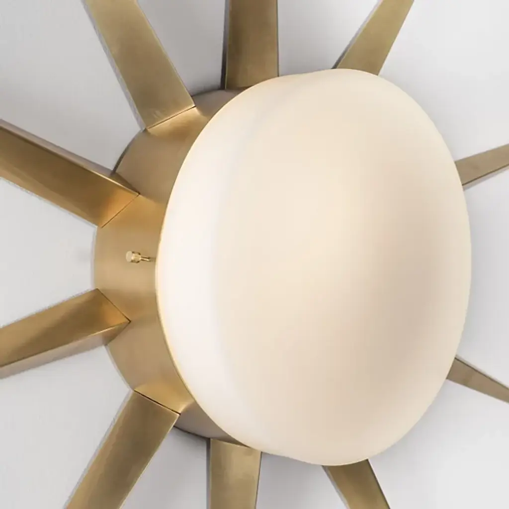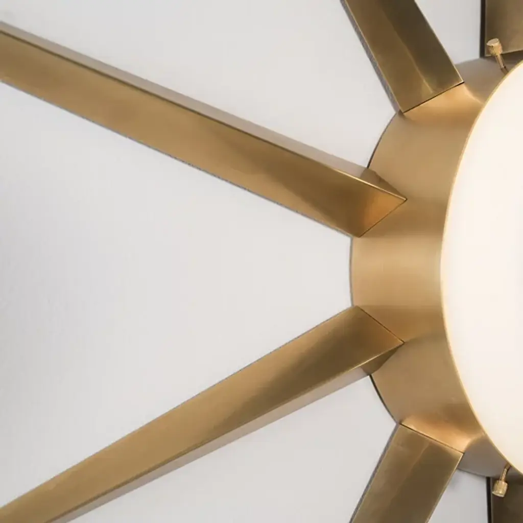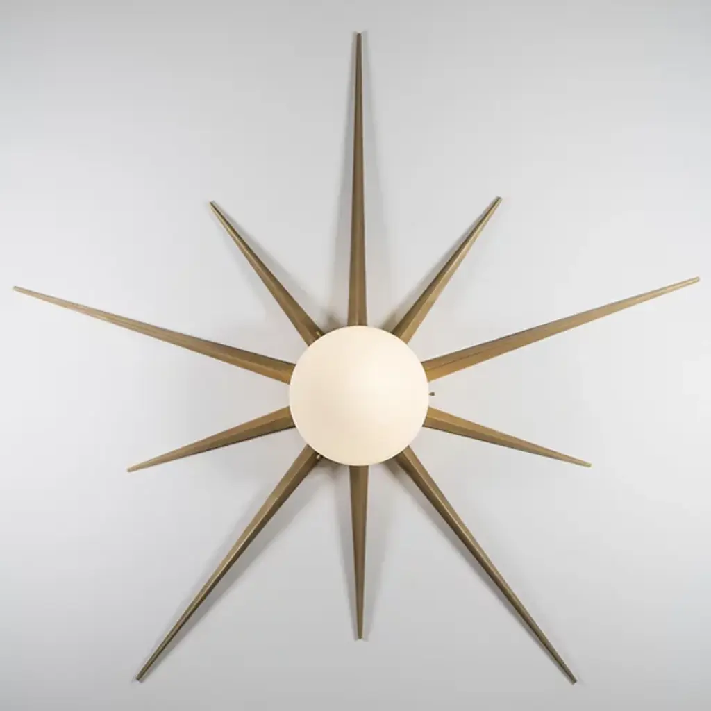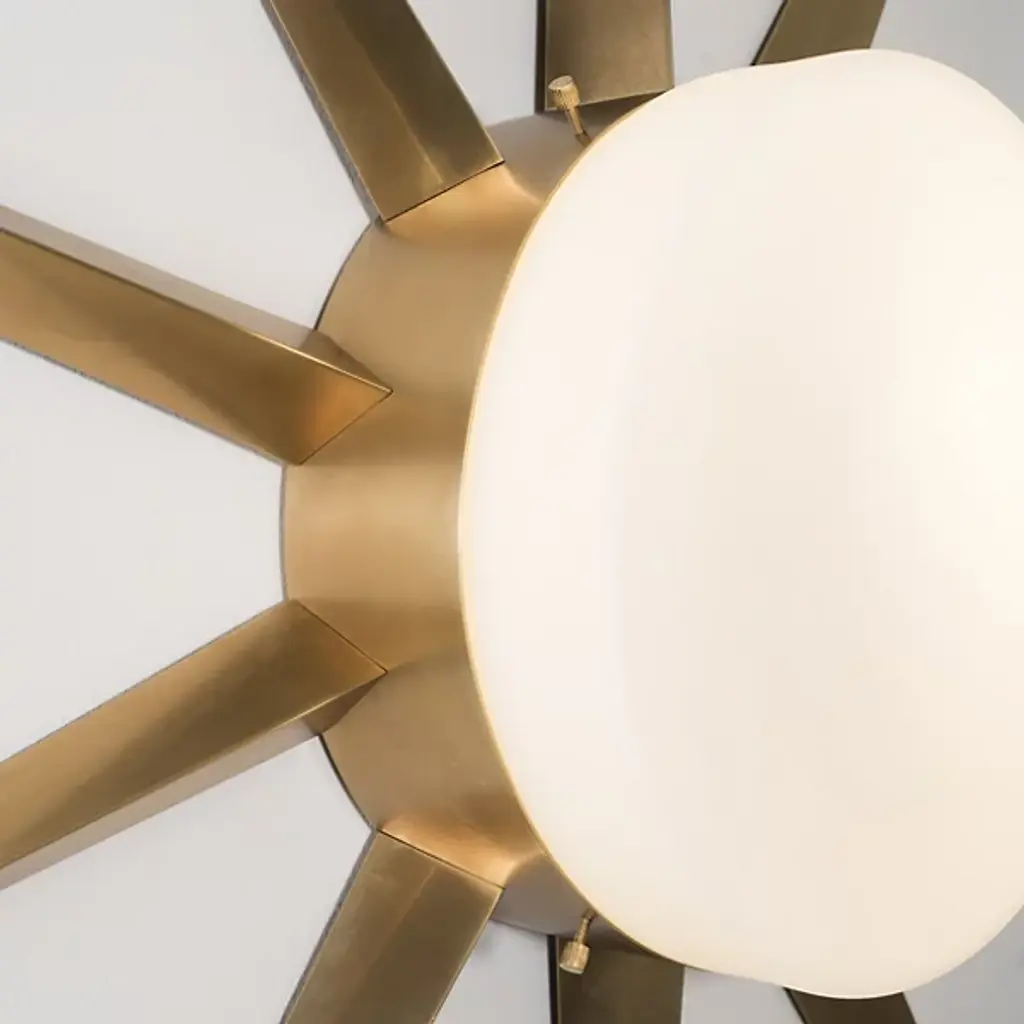 Presented by Design For Macha, the Solare Capri Wall / Flushmount is an artisan-made piece of Italian luxury lighting. Handcrafted in Italy, the Solare Capri is a tribute to the sun, with ten rays that flow from the core of an opaline Murano glass globe for the diffusion of illumination. This is a composition of metalwork and glass that comes into perfect harmony to showcase the minimalist beauty of luxe and luminous art.