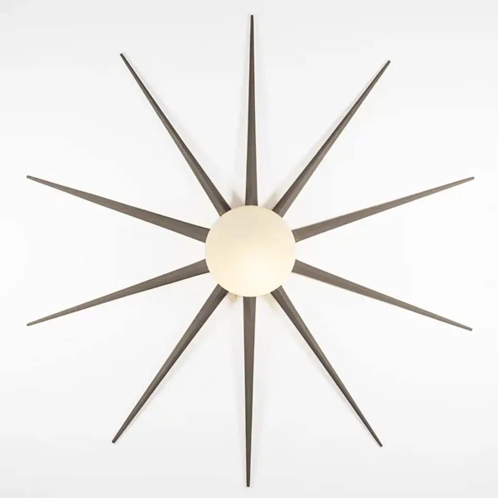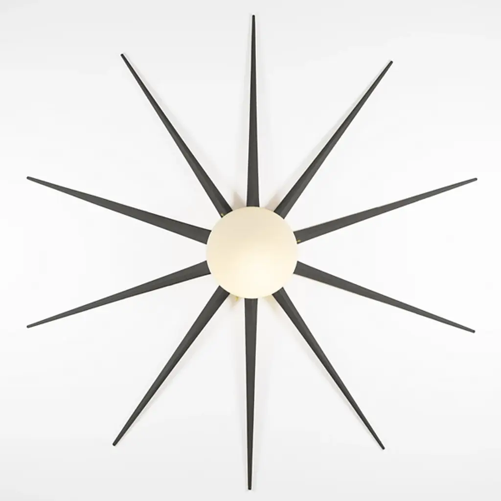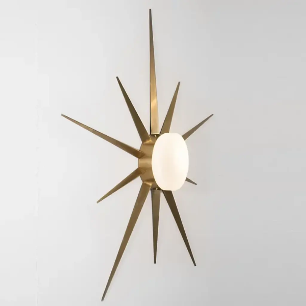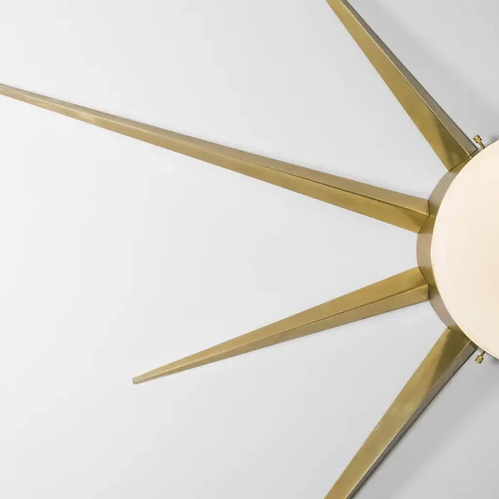 Presented by Design For Macha, the Solare Capri Wall / Flushmount is an artisan-made piece of Italian luxury lighting. Handcrafted in Italy, the Solare Capri is a tribute to the sun, with ten rays that flow from the core of an opaline Murano glass globe for the diffusion of illumination. This is a composition of metalwork and glass that comes into perfect harmony to showcase the minimalist beauty of luxe and luminous art.