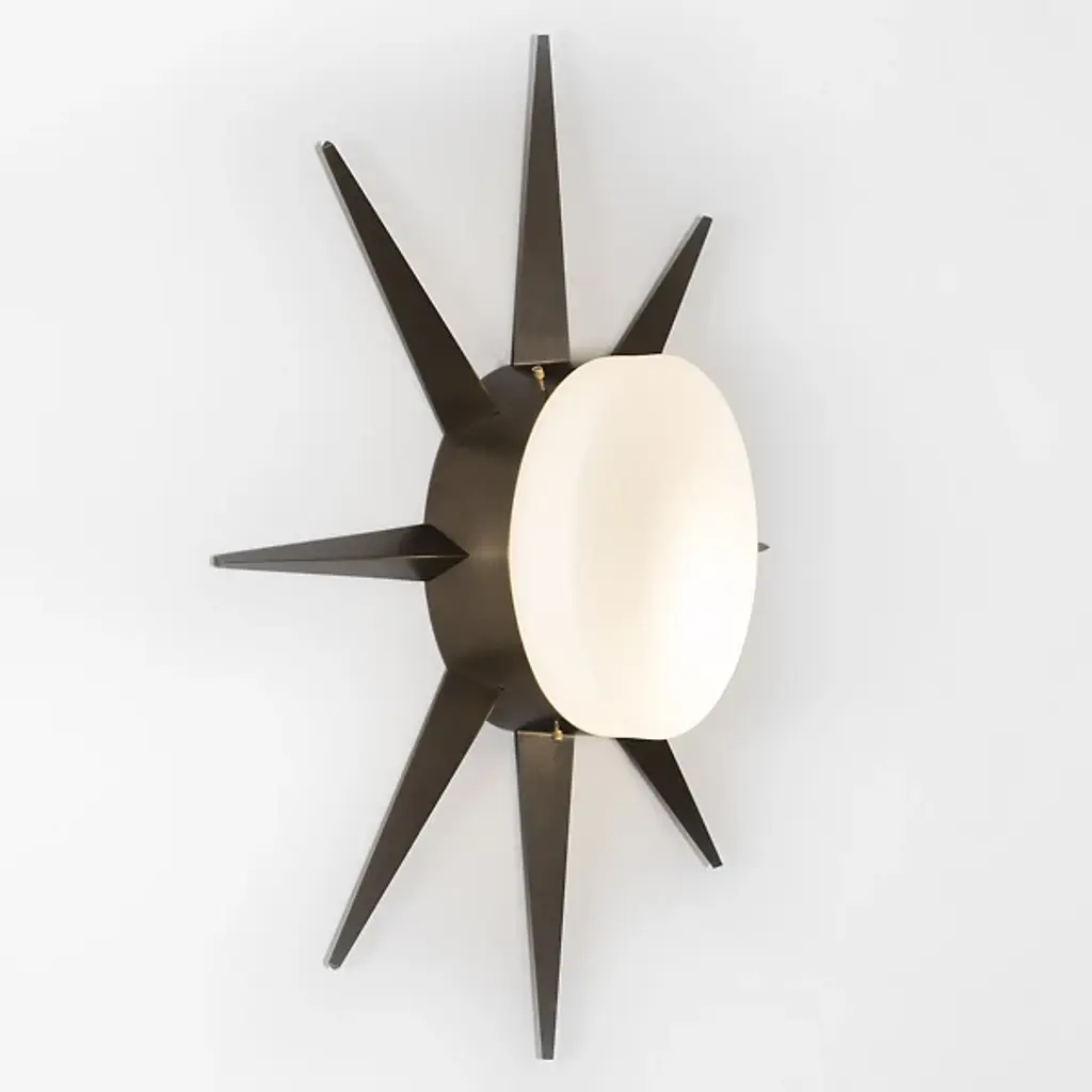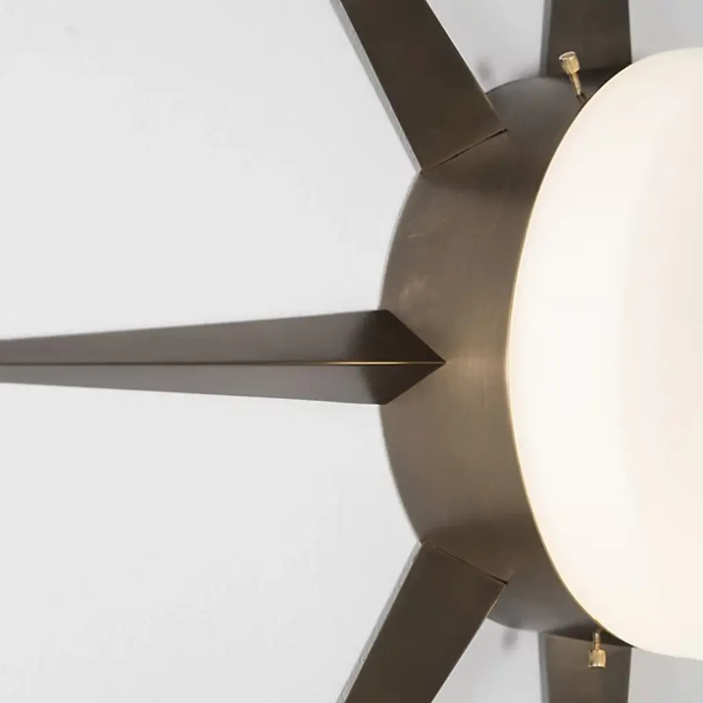 Featuring the use of opaline Murano glass shading, the Solare Punk Wall / Flushmount is a piece of luxury Italian lighting presented by Design For Macha. Handcrafted by Artisans in Italy and meant for versatile placement on the wall or ceiling, the Solare features a minimal yet playful composition that draws inspiration from the spikey aesthetic of punk style as well as the silhouette of the sun in its most simplistic form.
