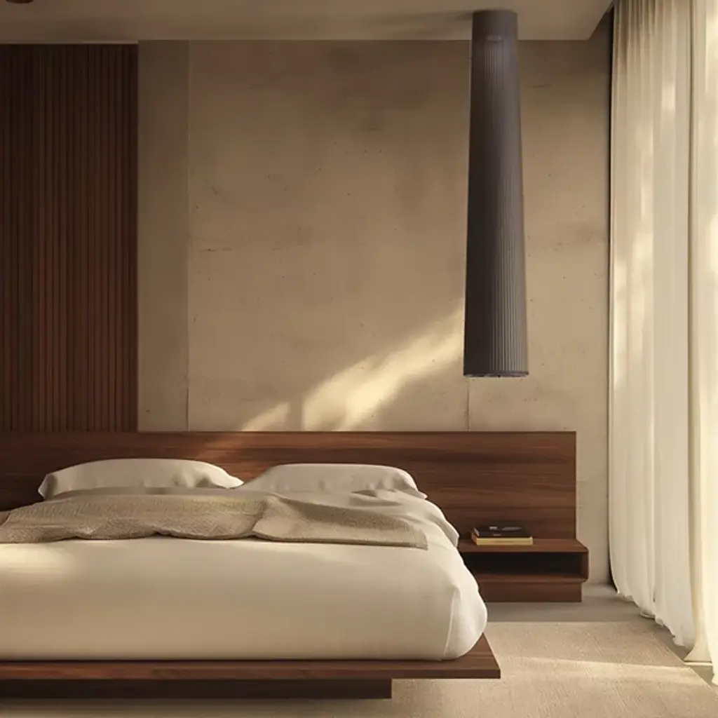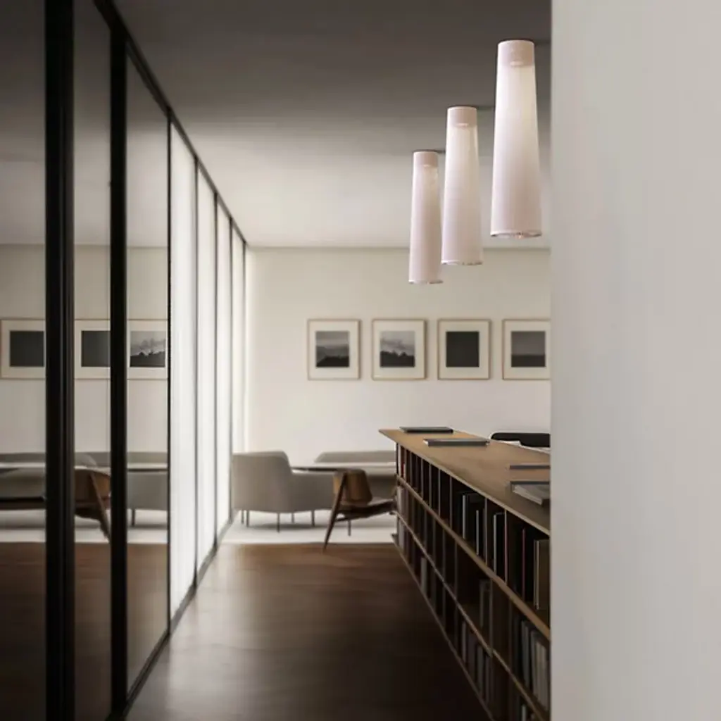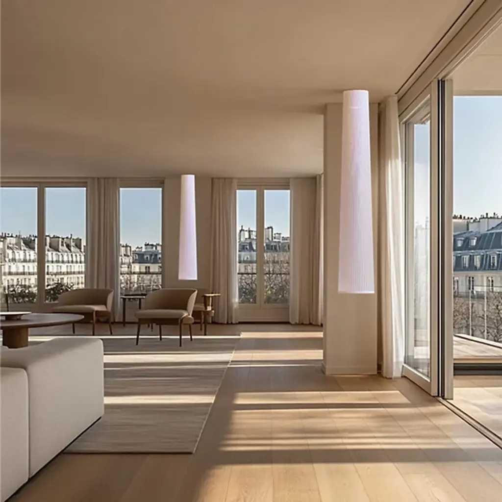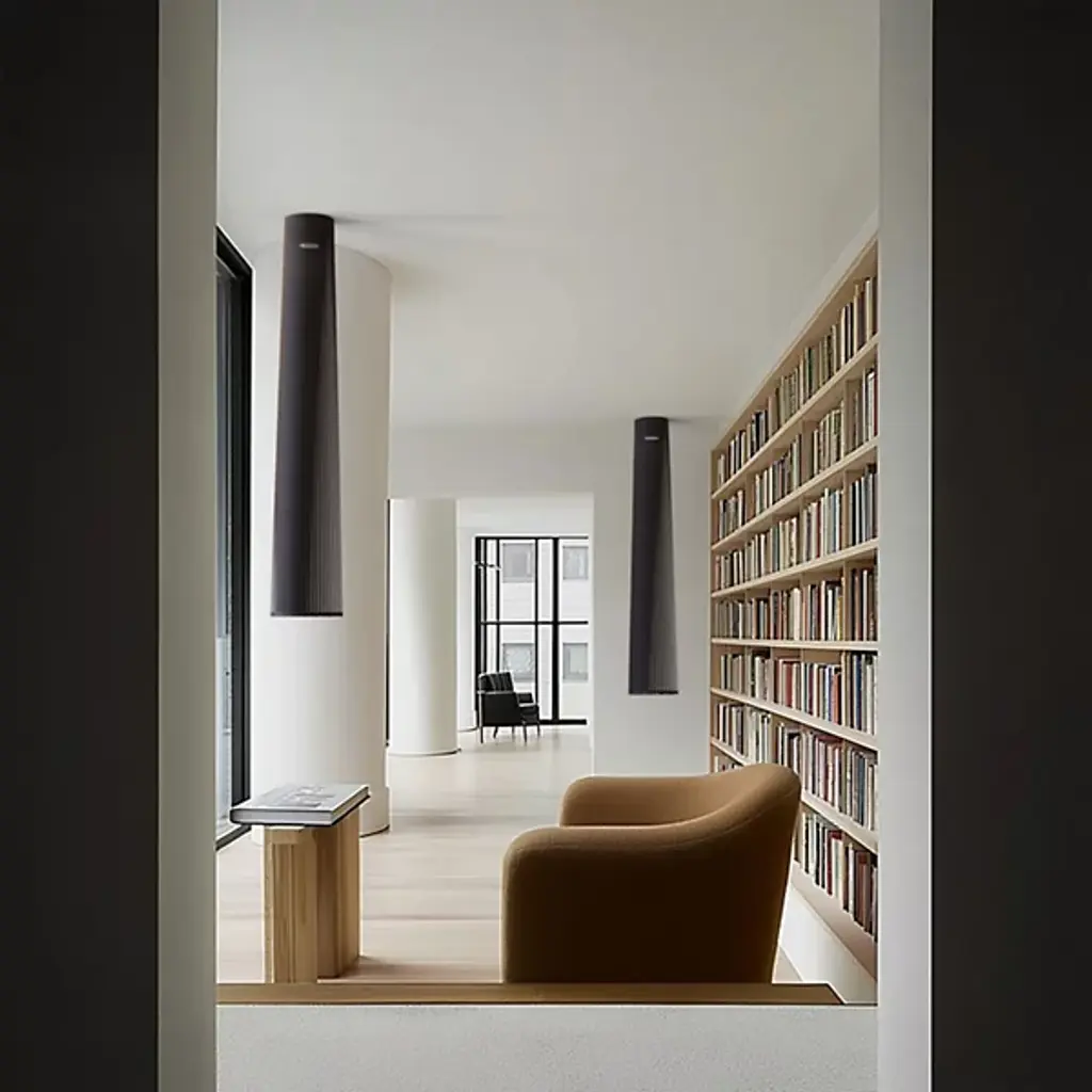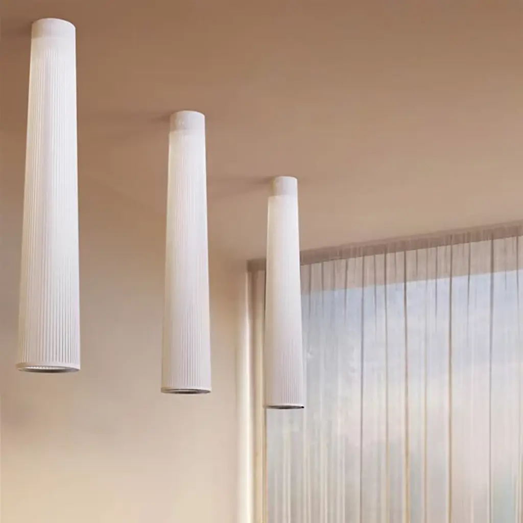 The Solis LED Flushmount from Pablo Designs brings the spirit of sunlight inside, going back to basics with a dynamic display of ambient light from its straightforward form. Designed by Carmine Deganello with the objective of recreating the sun’s rays, it blends light and shadow in a radiant array, utilizing vertical slats to cast shimmering beams through its tube shade, made of flame-resistant polyester. The fixture ships flat-packed for minimal impact, and its inner LED lamp casts a focused downlight, combined with the diffused rays of light that reach out to the sides, for a layered, expressive presence.