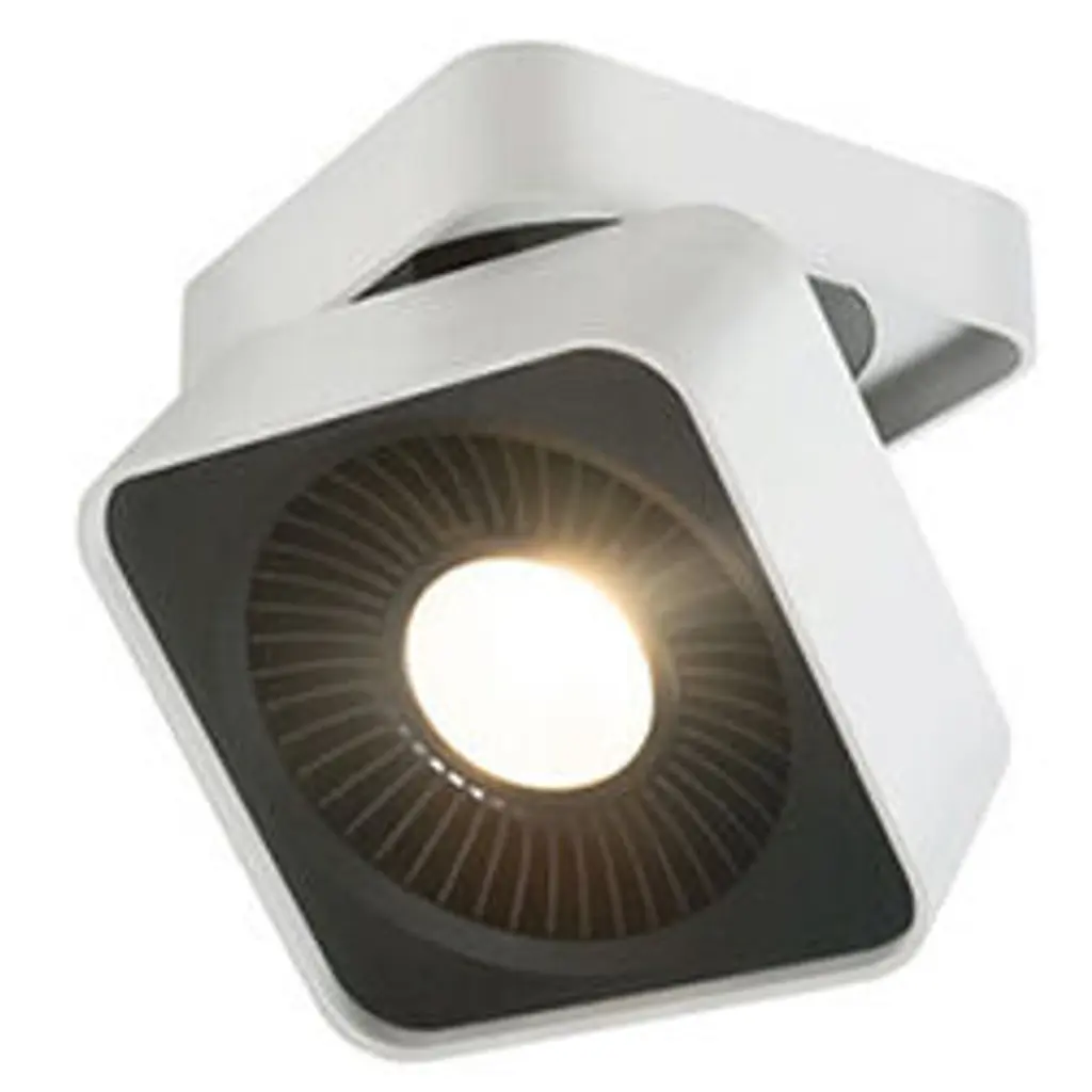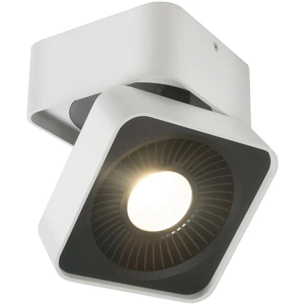 LED flush mount made from heavy gauge cast aluminum painted white, round cylinder shaped. Adjustable from mounting position 90 degrees with a 360 degrees radius. Perfect for commercial use to control the exact point to direct the light to weather it's against a wall, product display or many other applications. May be wall or ceiling mounted.