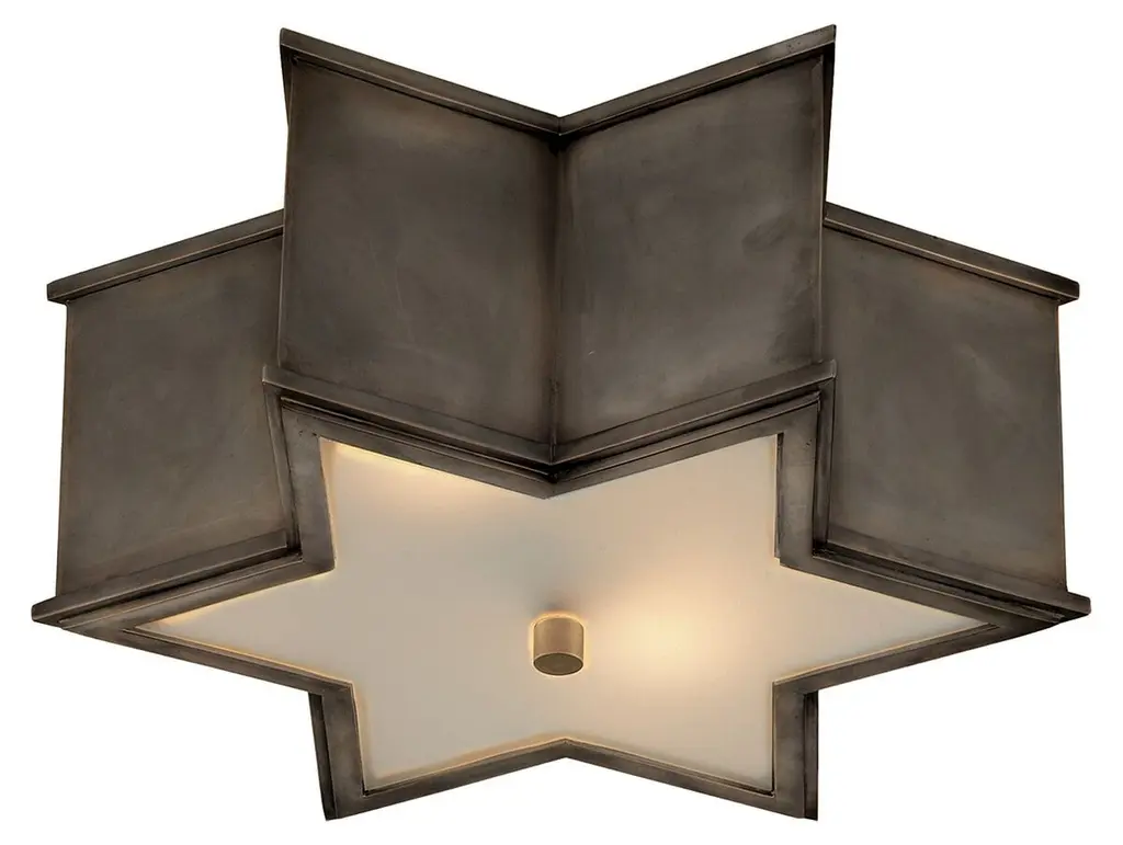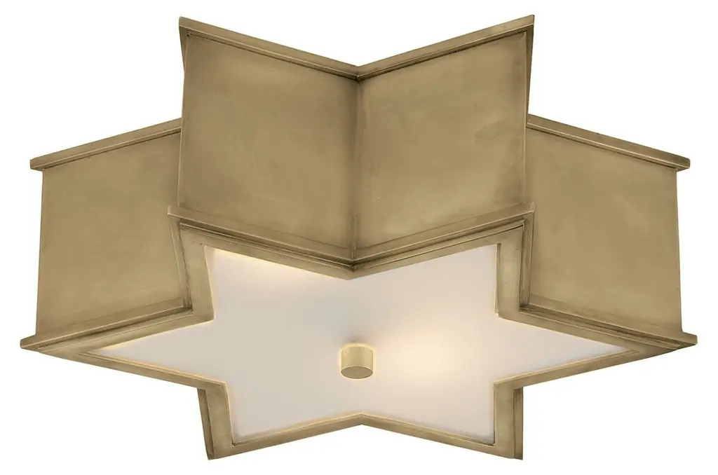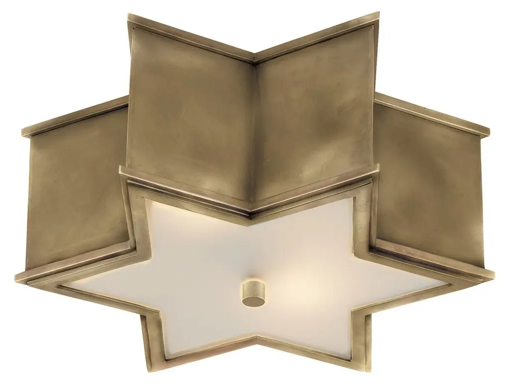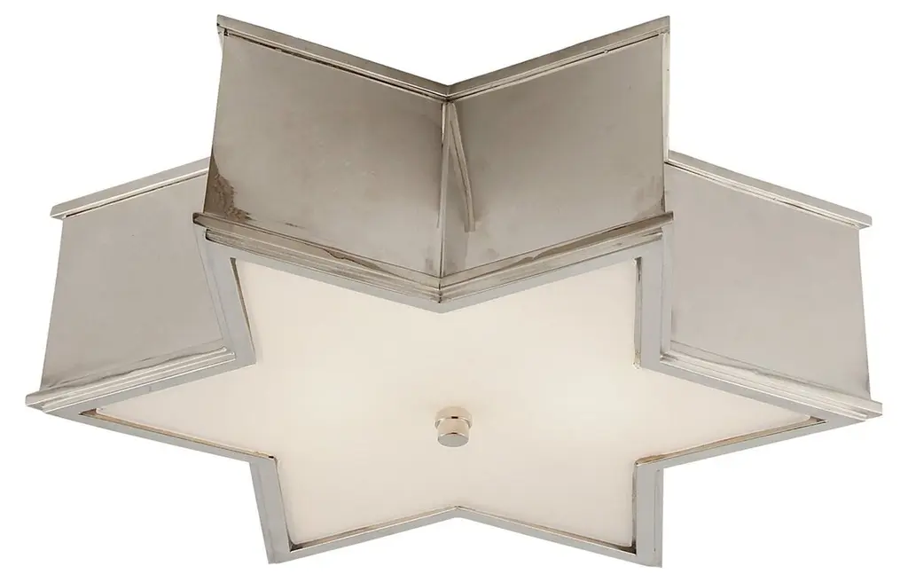 The Sophia Flushmount by Visual Comfort Signature, formerly known as Visual Comfort, will evoke the celestial with its star-shaped shade crafted of detailed metalwork with timeless finishes. This frame, along with a Frosted Glass diffuser ensure that this fixture will light up the sky in your home with warmth and style.