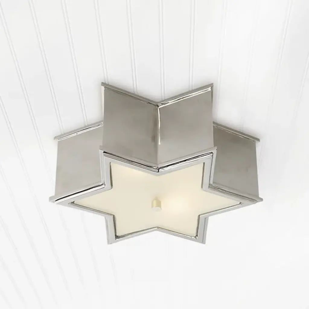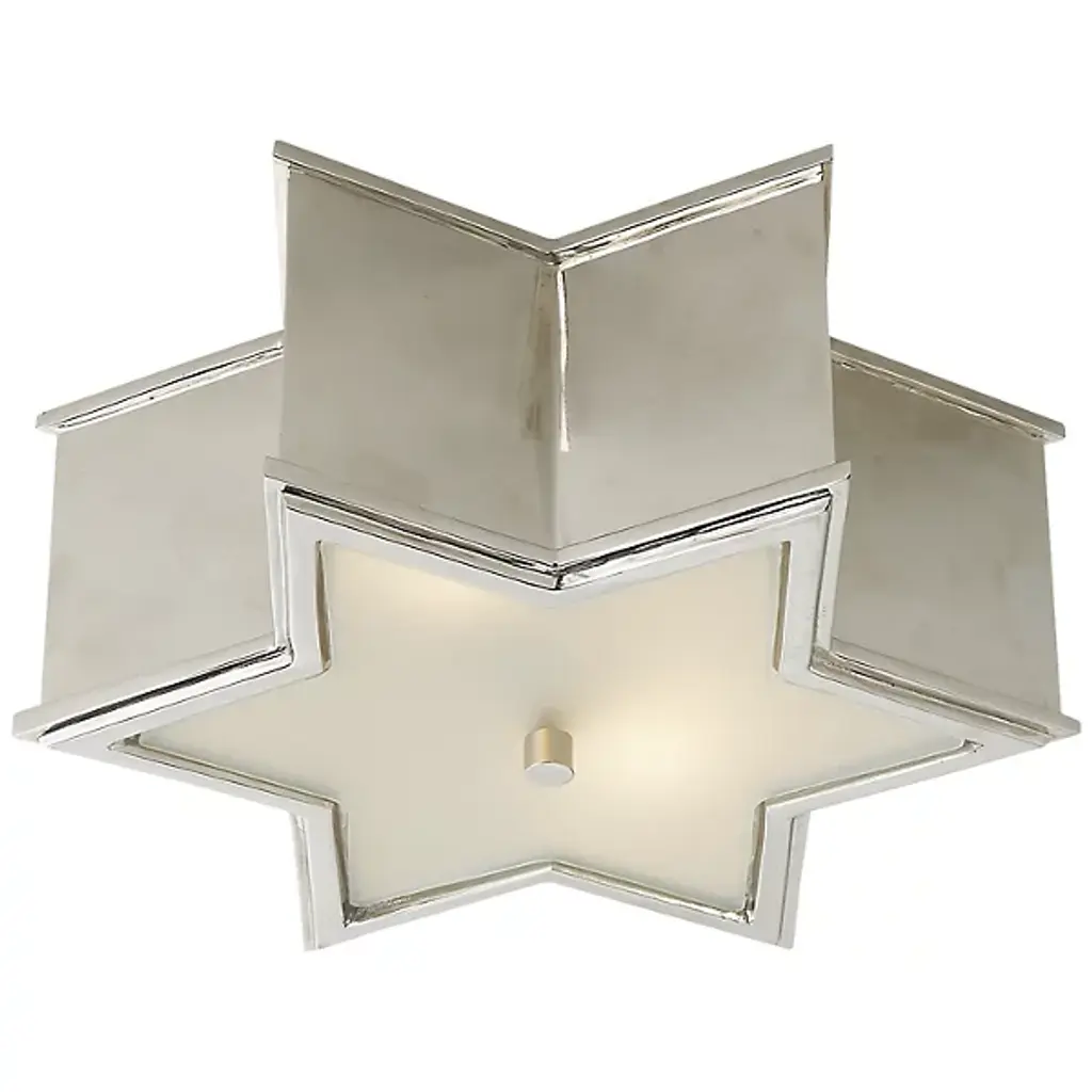 The Sophia Flushmount by Visual Comfort Signature, formerly known as Visual Comfort, will evoke the celestial with its star-shaped shade crafted of detailed metalwork with timeless finishes. This frame, along with a Frosted Glass diffuser ensure that this fixture will light up the sky in your home with warmth and style.