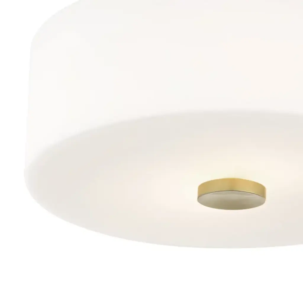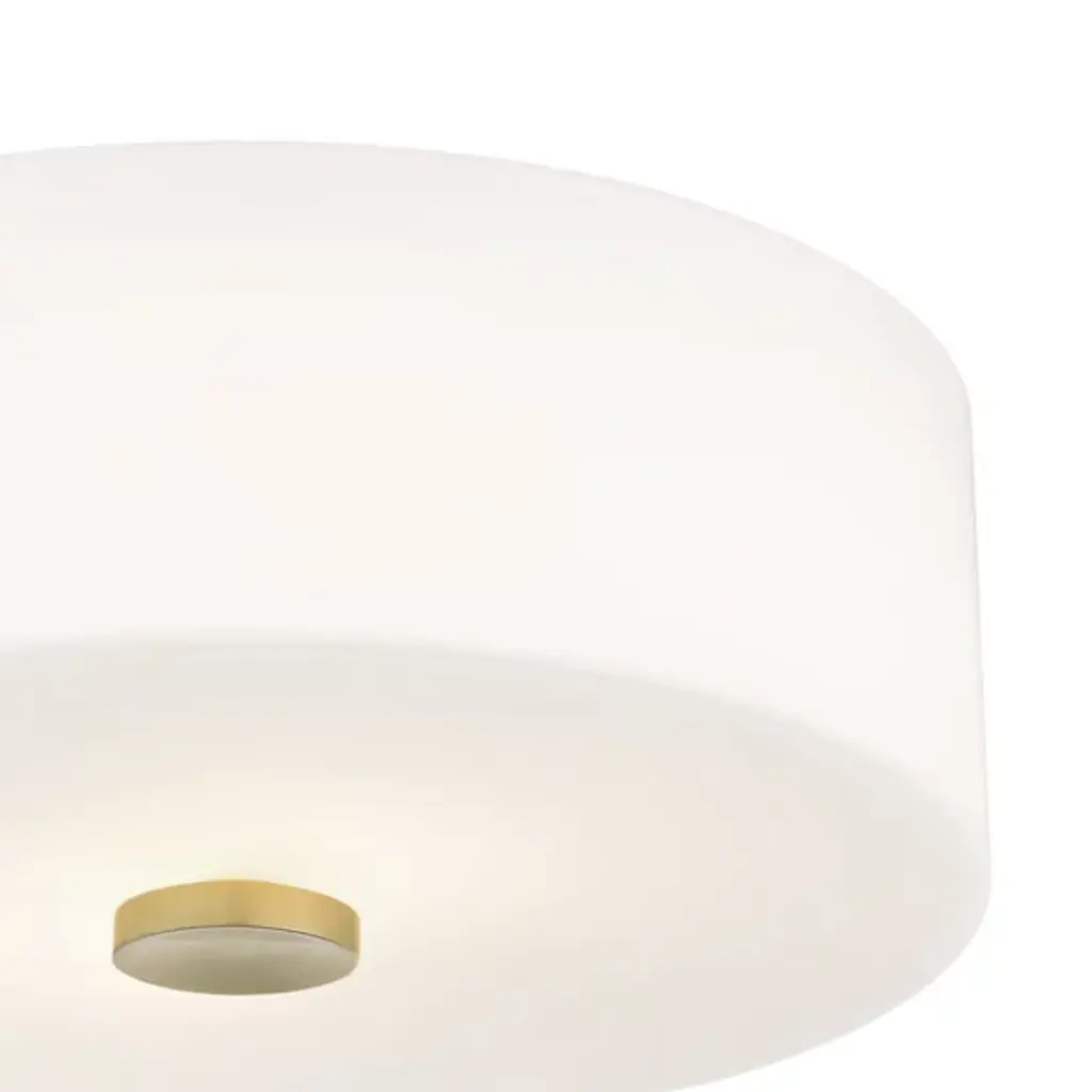 Complement your contemporary lighting with the Sophie Flushmount by Mitzi. A sophisticated drum-shaped design, it showcases an Opal Etched Glass shade with a round Metal button finial. The quiet simplicity of this ceiling light and the soft even lighting it provides, make it a stylish choice for a bedroom, dining room or foyer.