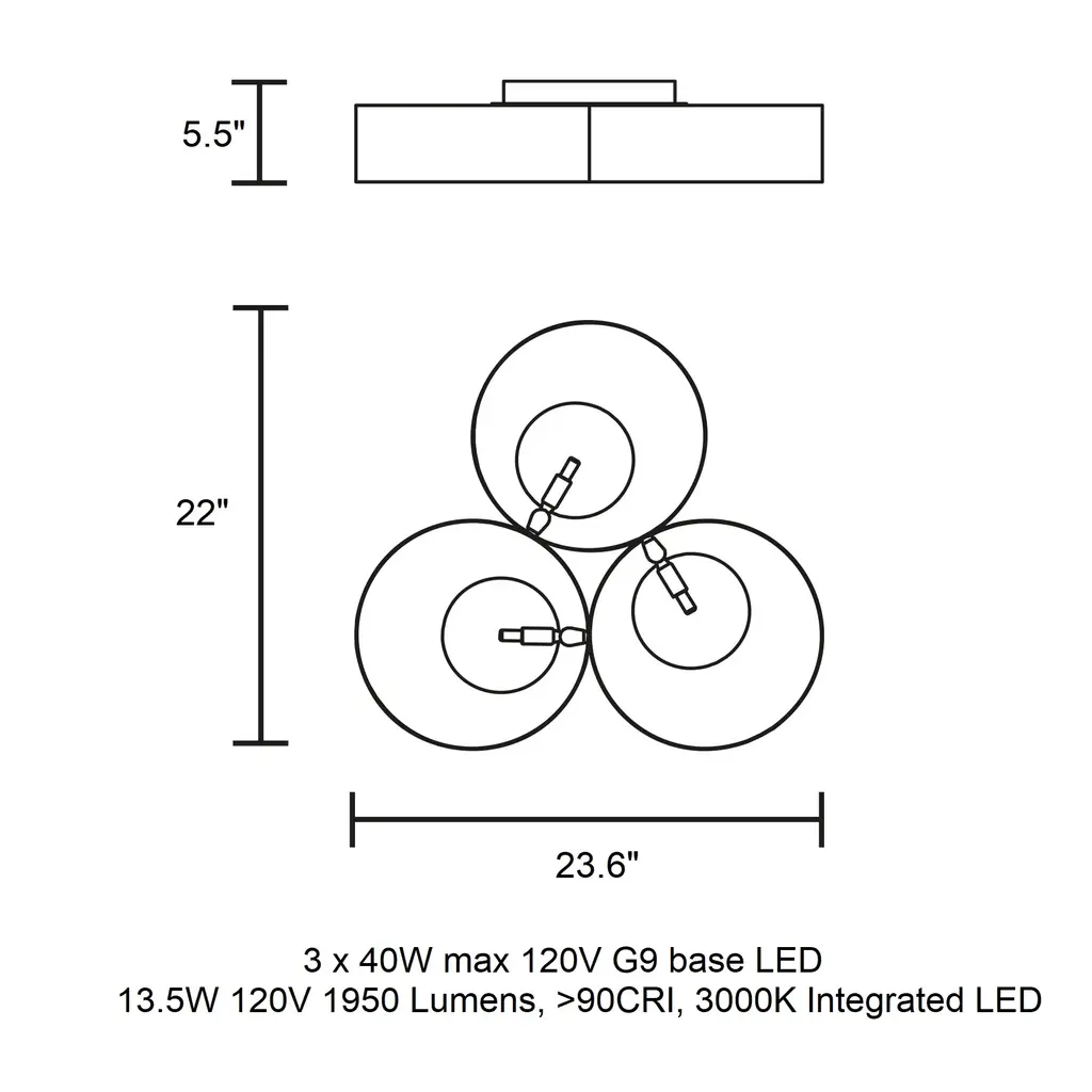 Bring dynamic beauty to your space with the Sound Flush Mount from Masiero. Designed by Giovanni Battista Gianola, this piece is inspired by the elegant curves of trumpets and their impact on sound. The decorated glass diffusers and wide metal bands create an airy and bold composition, casting a lovely layer of light. Transform your surroundings with this sophisticated and exclusive design. Highlights