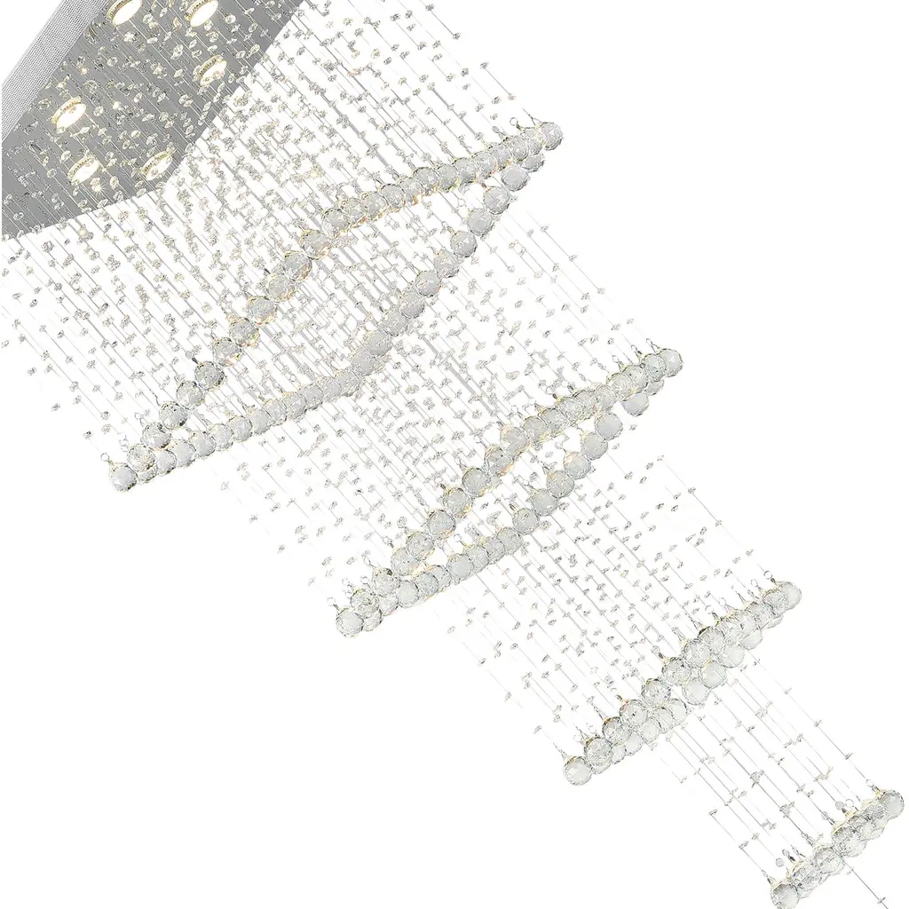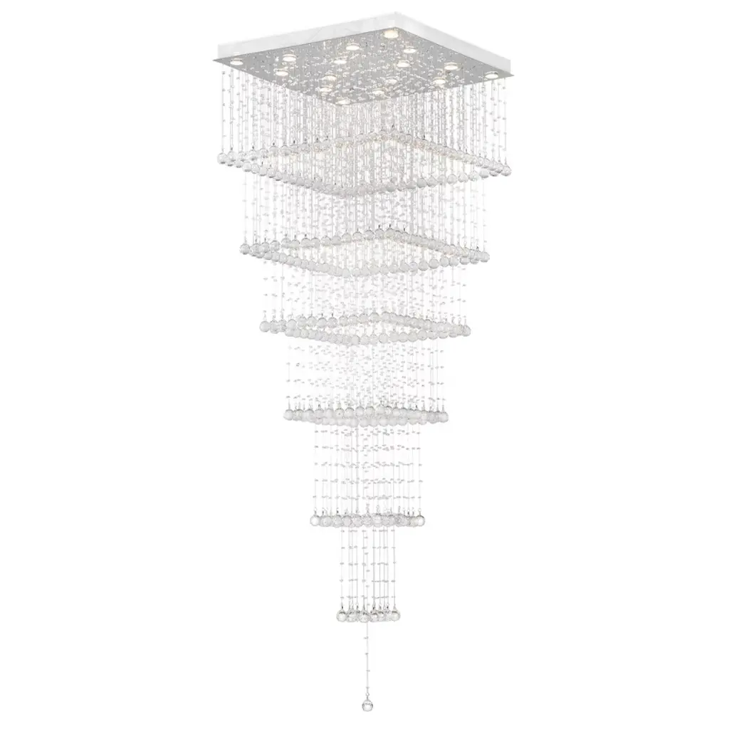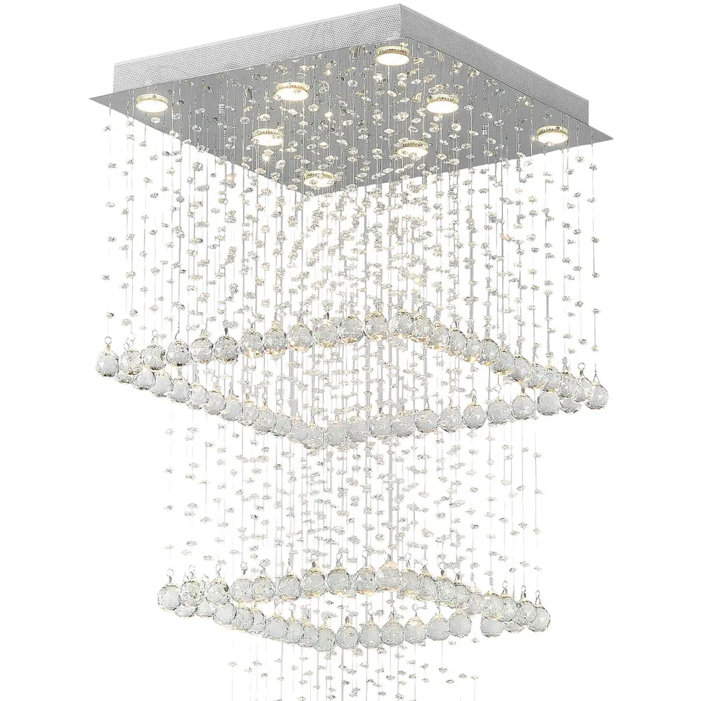 The Square 8 Light Flush Mount would make a stellar statement piece in your living room, entryway, or stairwell. This close-to-ceiling chrome-finished light source has four square tiers of crystal strands finished at the bottom tip with a single crystal ball drop. The fanciful design that sparkles day and night can clearly provide pizzazz to any space.