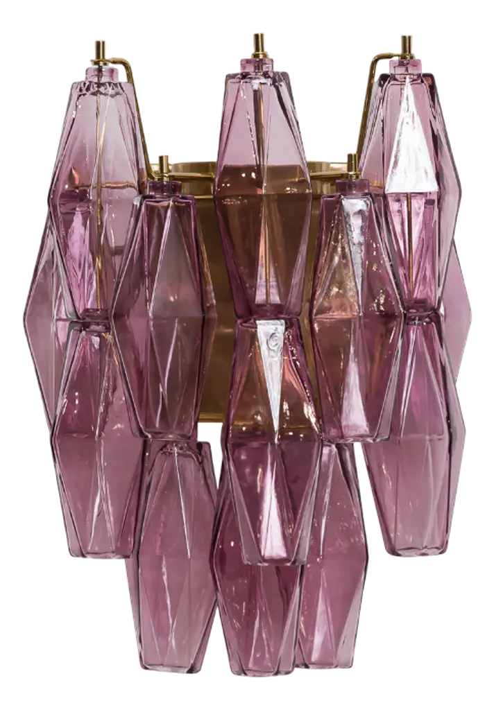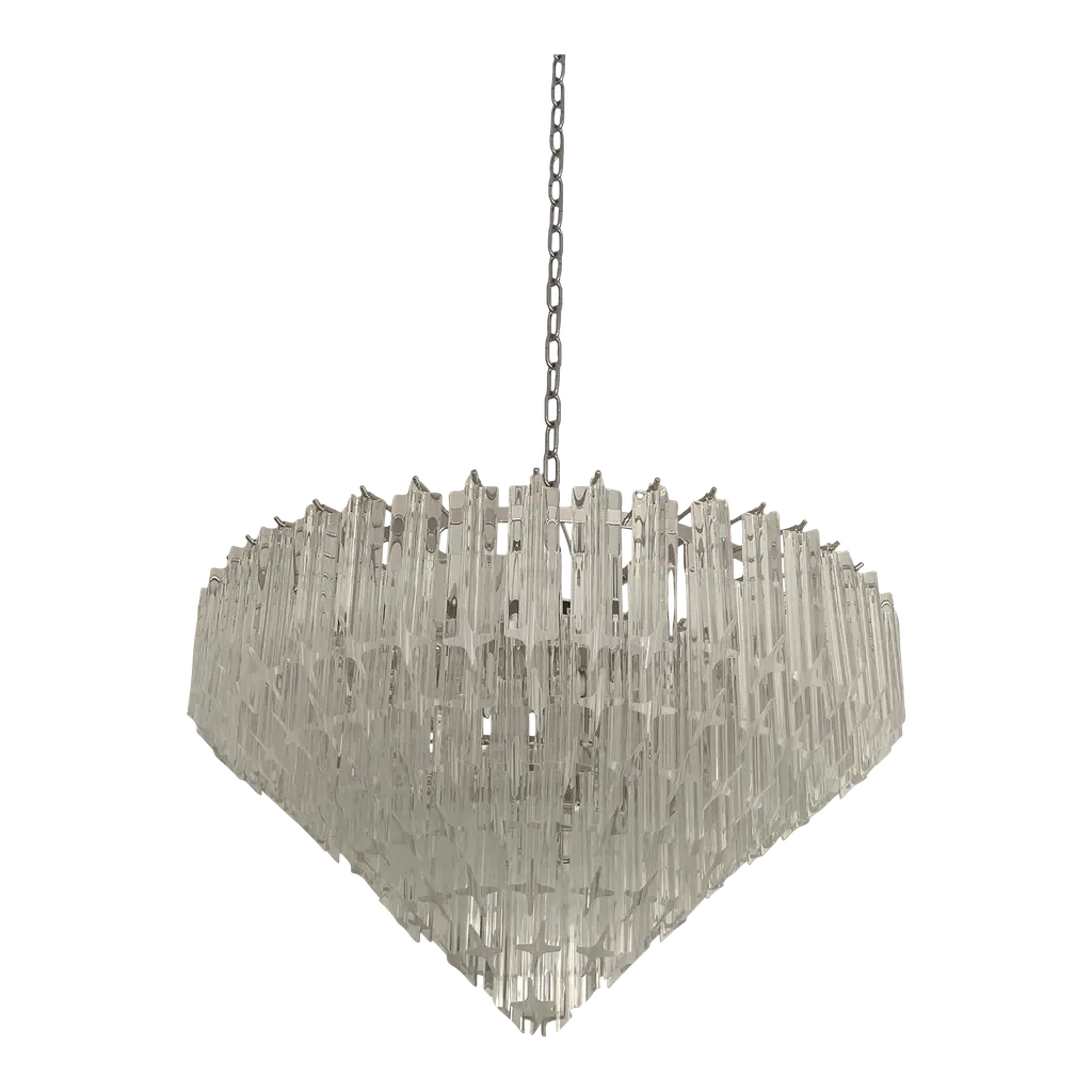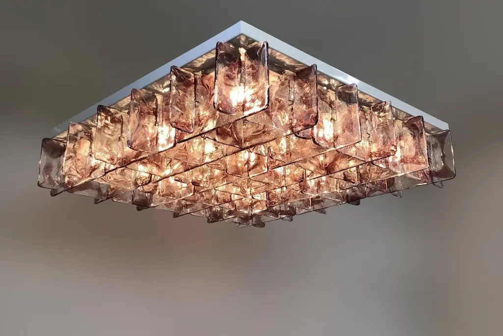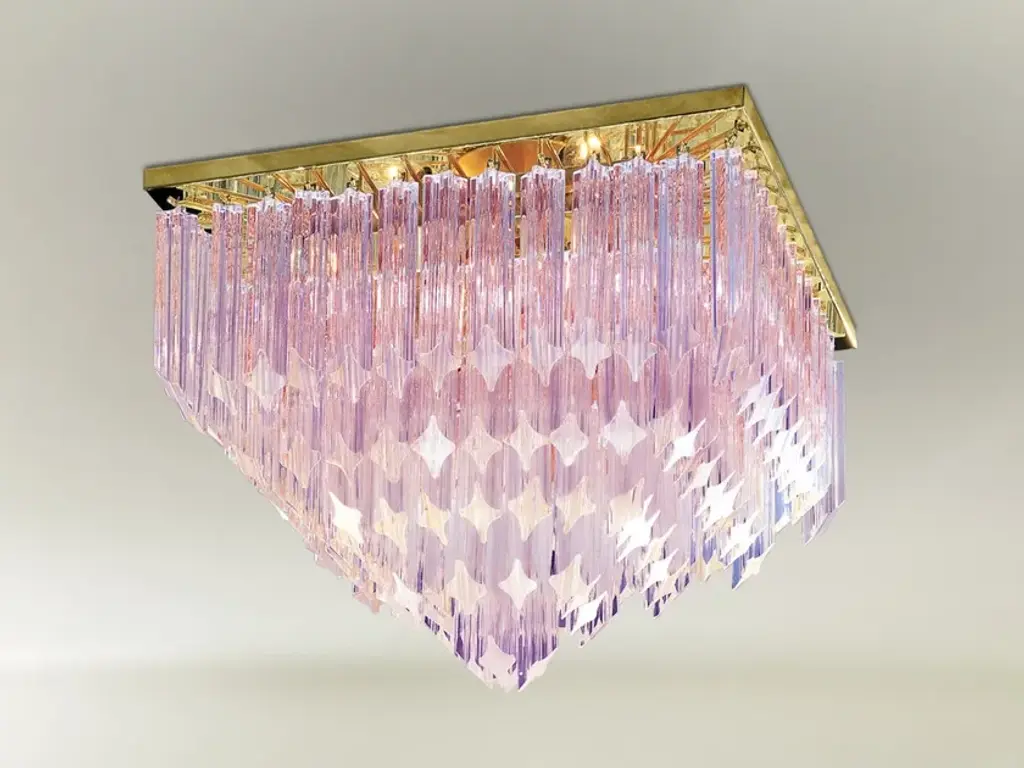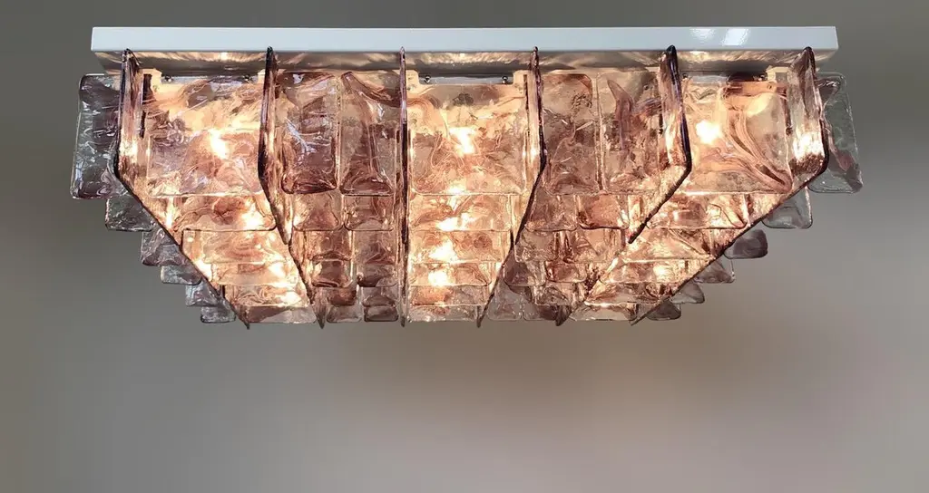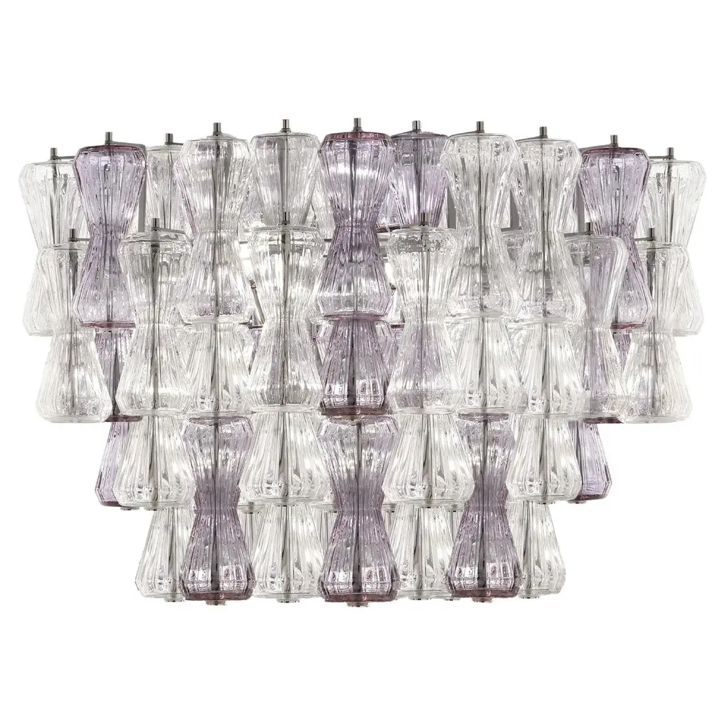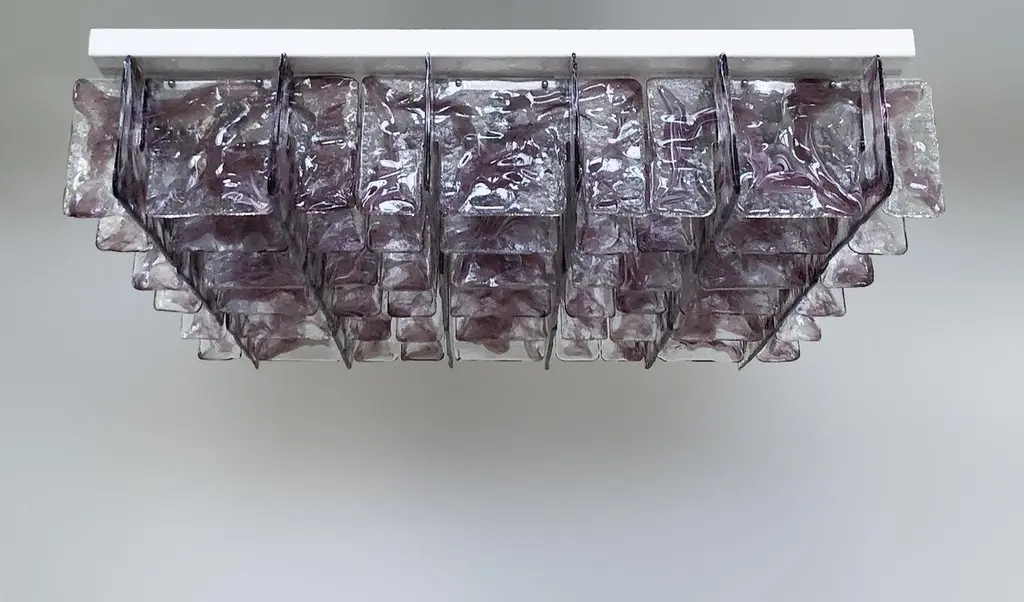 Italian flushmount with hand blown clear and amethyst Murano glass panels mounted on white metal frame with chrome hardware / Made in Italy9 lights / E26 or E27 type / max 60W eachMeasures: width 47 inches, height 14.5 inchesOrder only / this ships from ItalyOrder Reference: FABIOLTD C926.