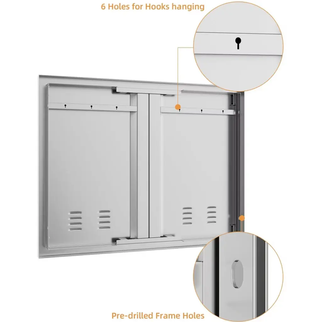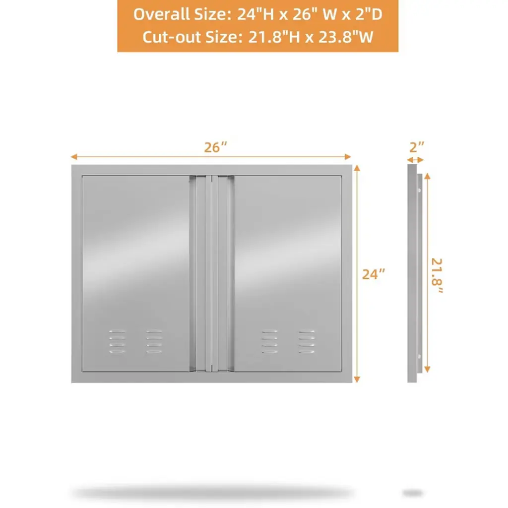 Stainless Steel Doors For Outdoor Kitchens, 26w X 24h Inch Flush Mount Bbq Access Door With Recessed Handle & Vents, For Outdoor Kitchen