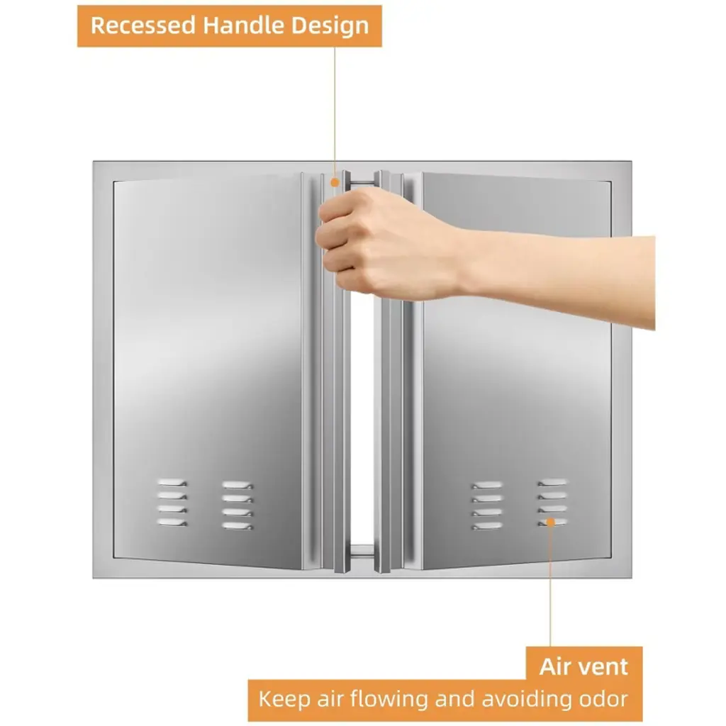 Stainless Steel Doors For Outdoor Kitchens, 42w X 21h Inch Flush Mount Bbq Access Door With Recessed Handle & Vents, For Outdoor Kitchen And Bbq
