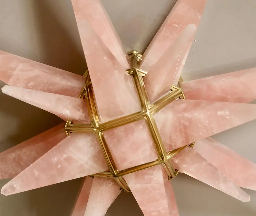 Pink Rock Crystal Flush Mount with polished brass metal finish. Created by Phoenix Custom metal finish upon request.two E12 sockets installed.160w total.