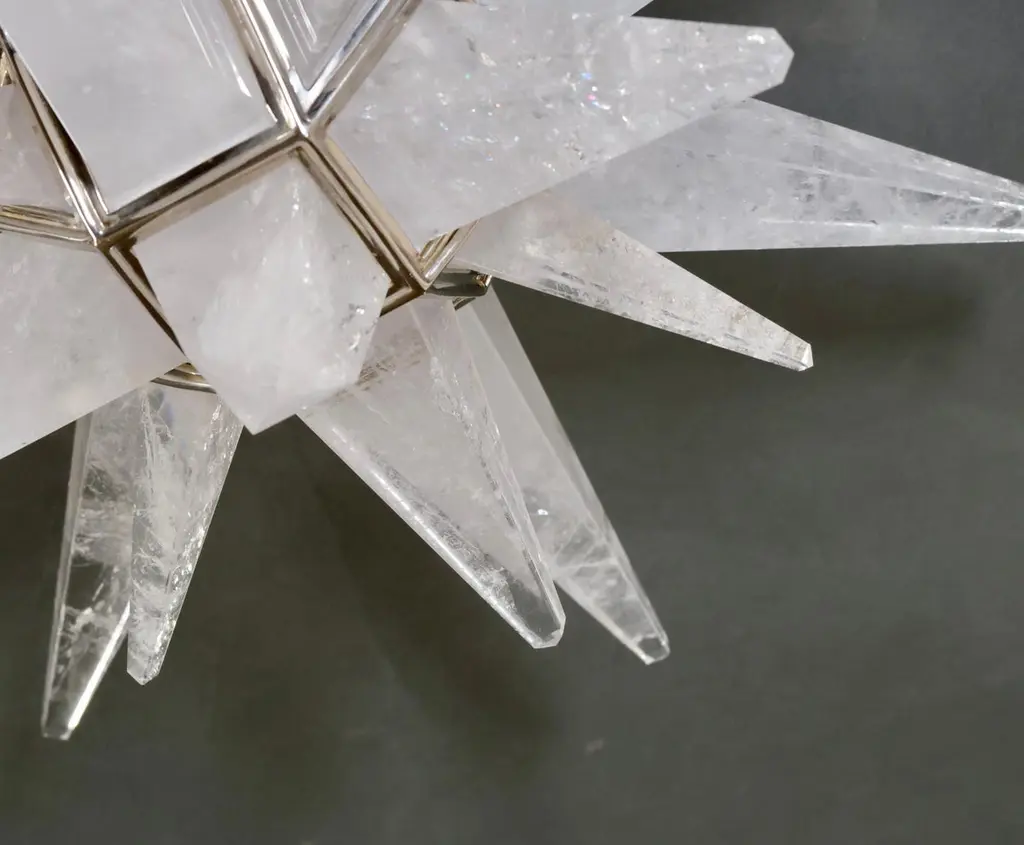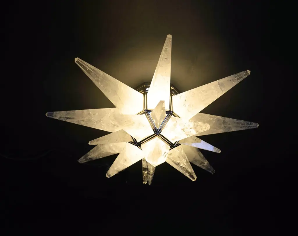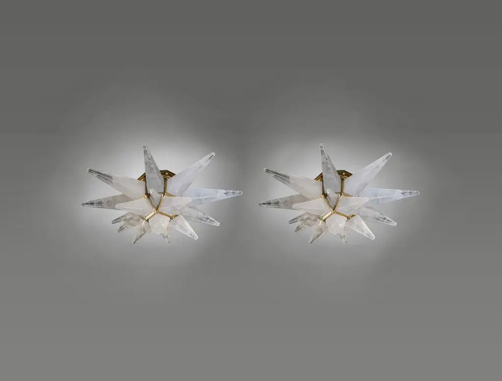 Star form rock crystal flush mount with polish brass frame.Each fixture installed two sockets. Crated by Phoenix gallery.