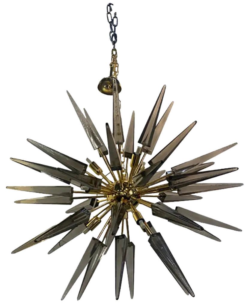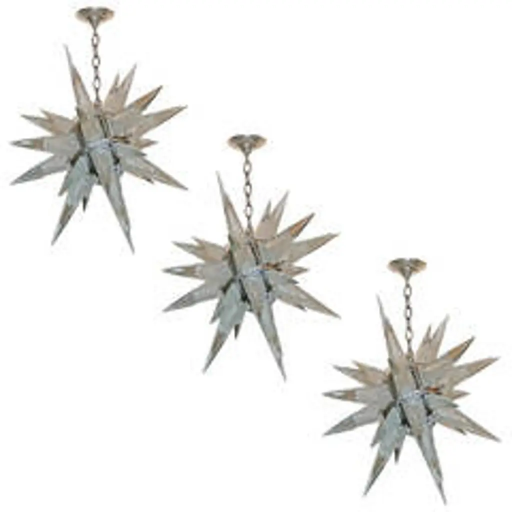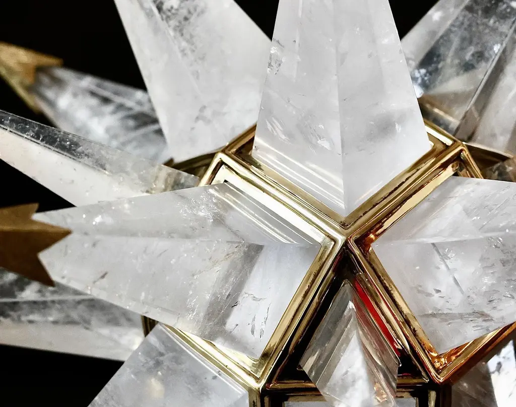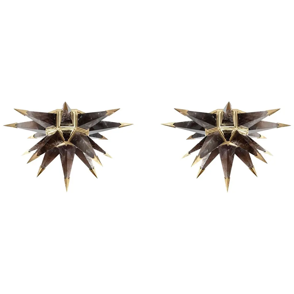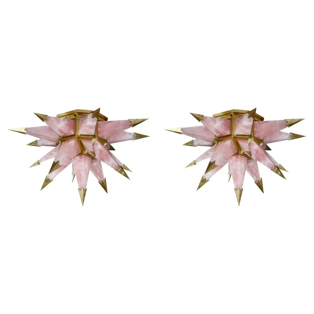 Pair of star form rock crystal flush mounts with polish brass frame and tip. Created by Phoenix Gallery, NYC.Custom size, quantity, and finish upon request.