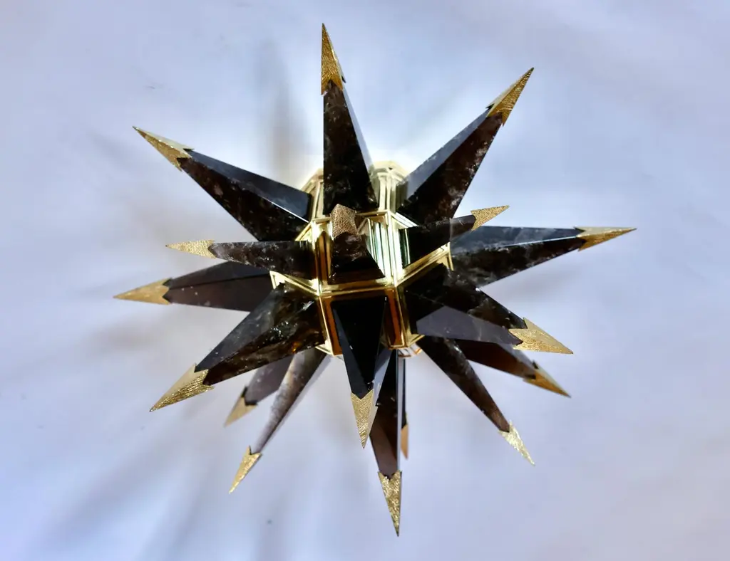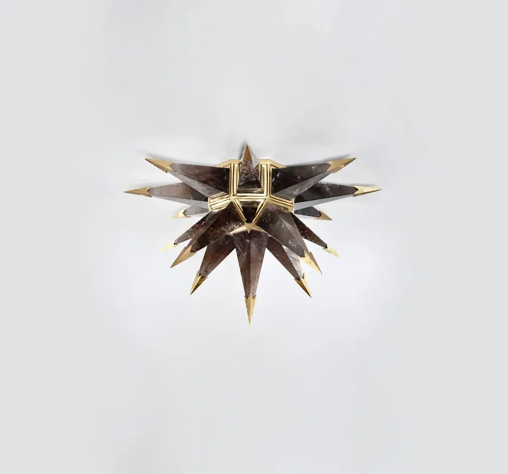 Star from smoky rock crystal flushmount with polish brass frame and tip. Created by Phoenix Gallery, NYC.Two sockets installed120W total