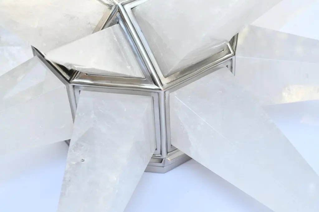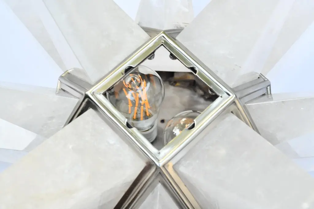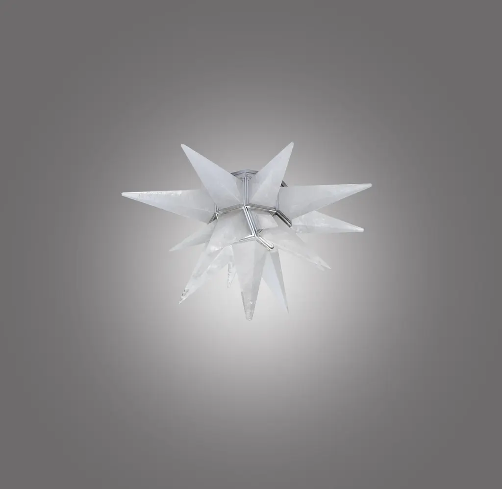 A fine carved star form rock crystal flush mount with matte nickel finished frame, created by Phoenix Gallery, New York City.Two sockets installed.