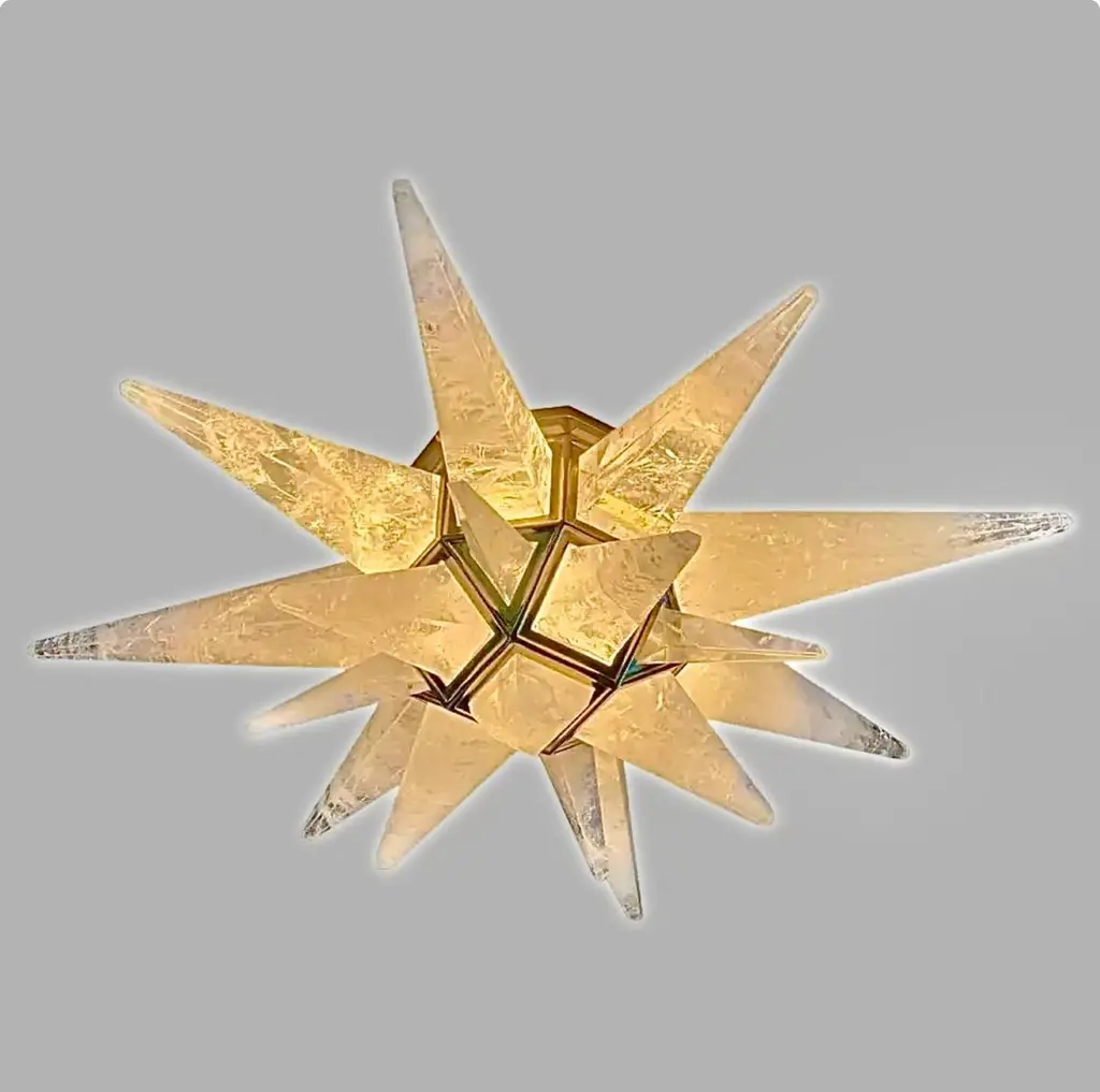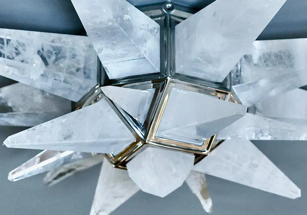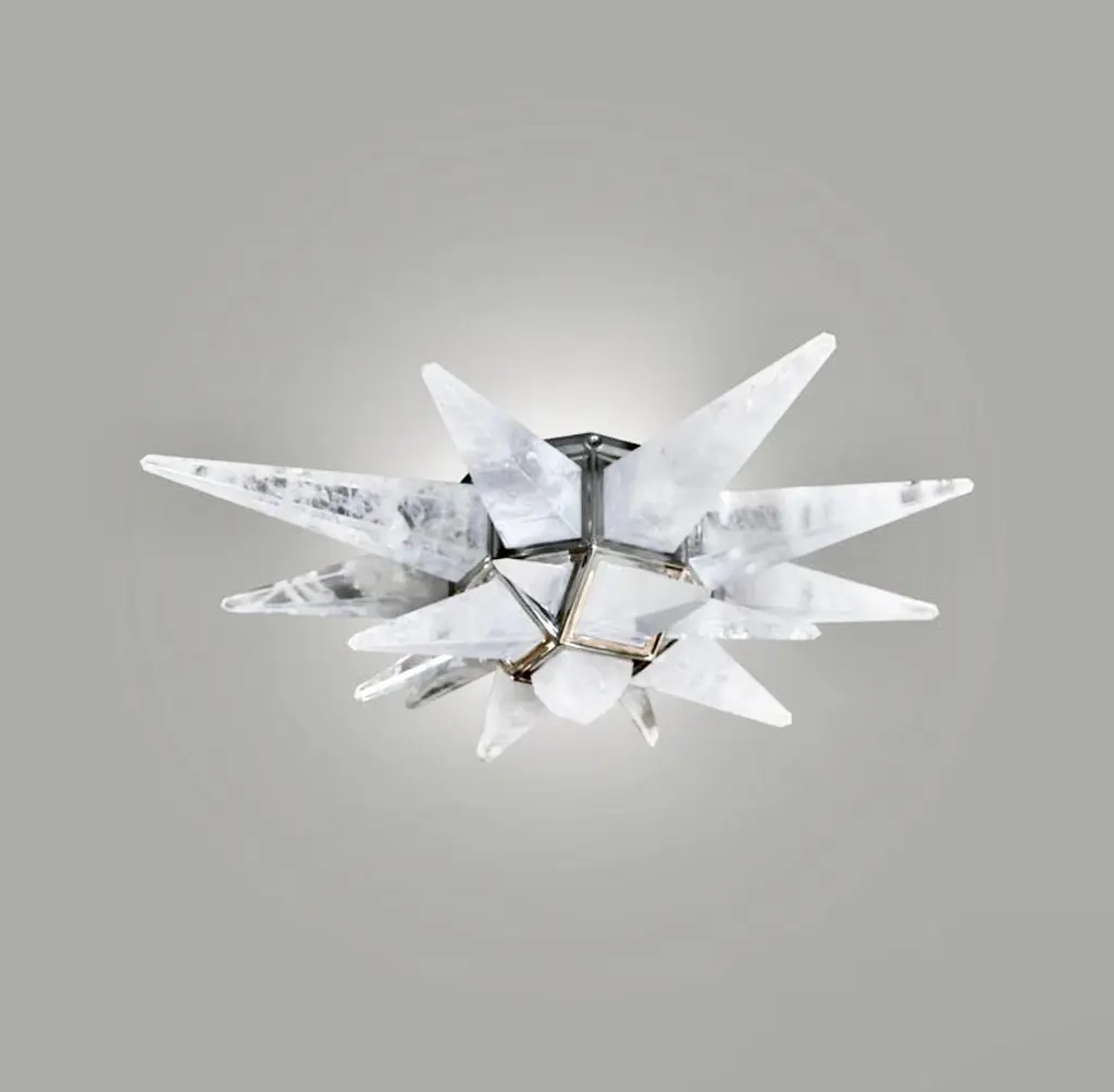 Star form rock crystal flushmount with polish nickel frame. Two E12 sockets installed,120 W total Created by Phoenix Gallery, NYC.