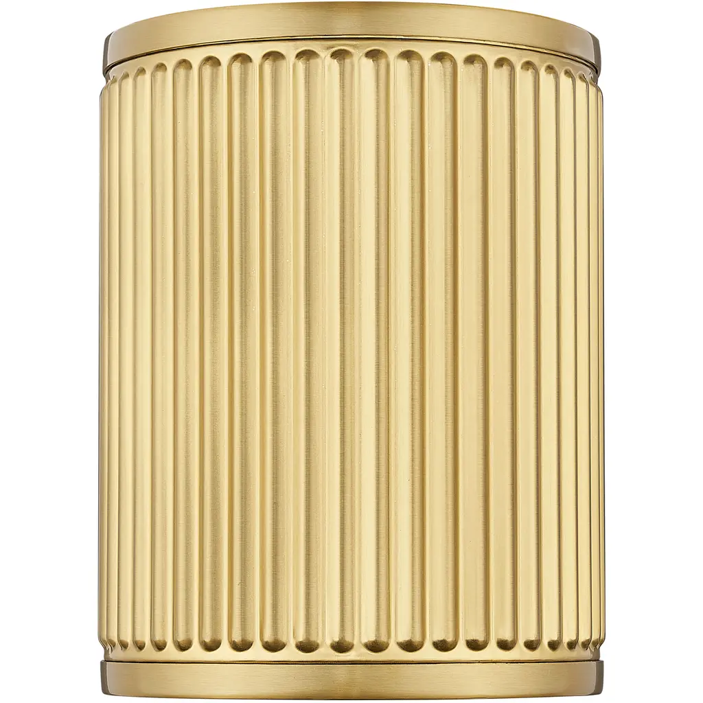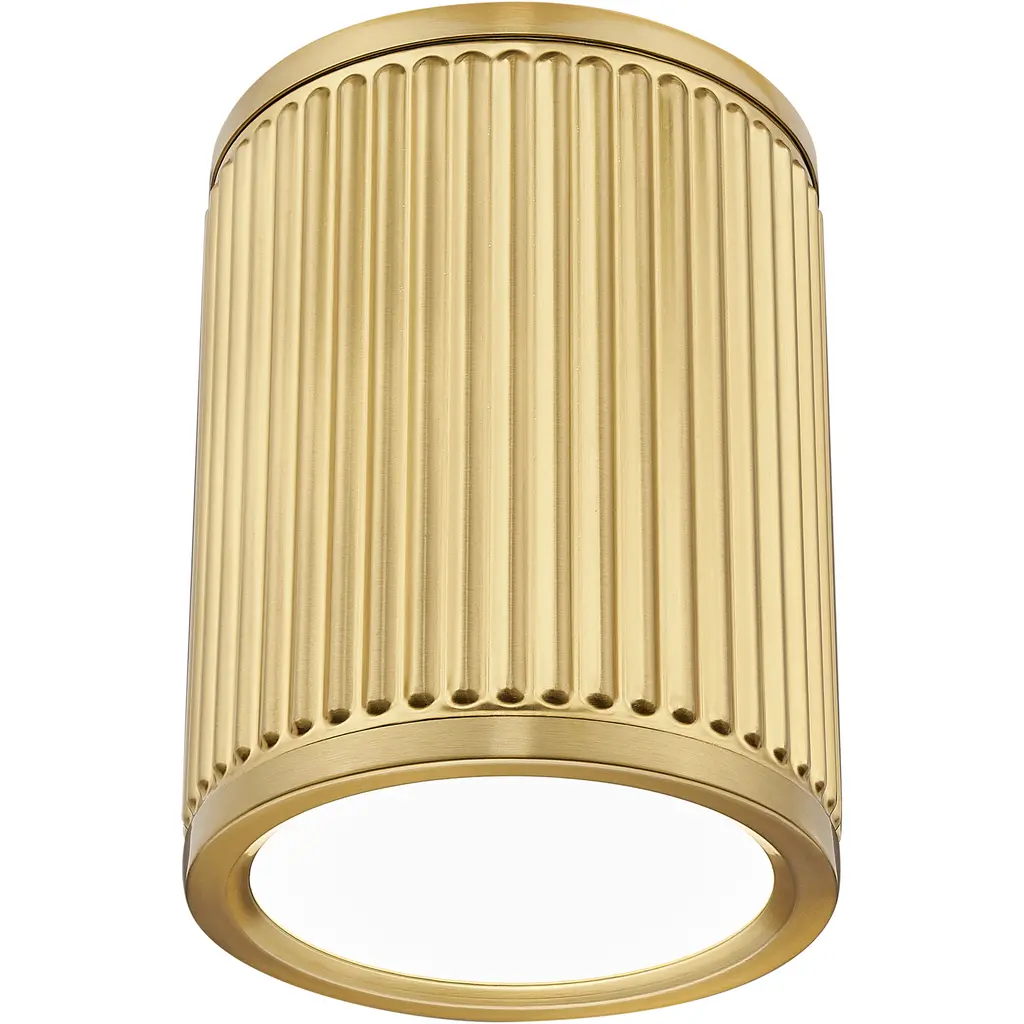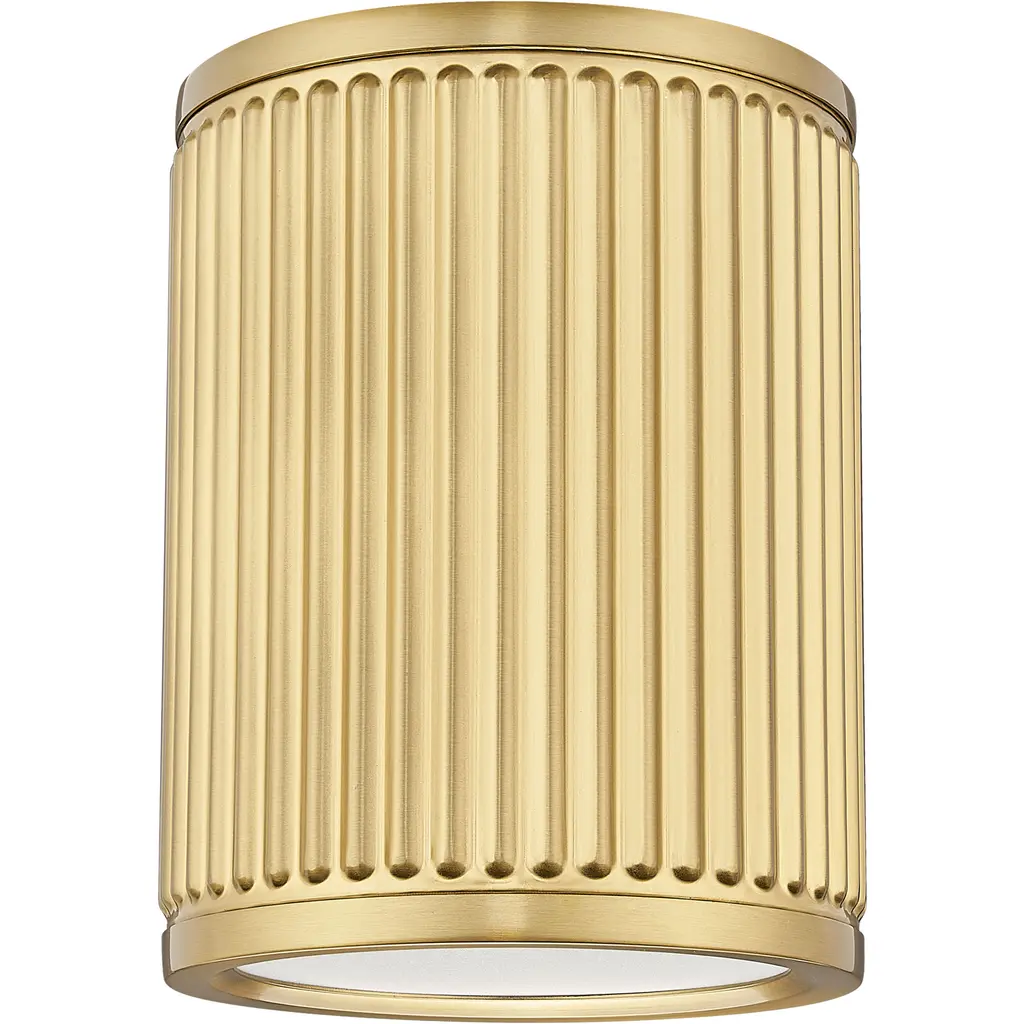 A chic ribbed design and modern gold finish bring warmth and sophistication to a contemporary flush mount LED ceiling light. It's an energy efficient design with an understated cylindrical silhouette, perfect for a multitude of spaces within your stylish home. Its integrated LED is tucked behind a frosted acrylic diffuser to deliver impeccable illumination in any setting.
