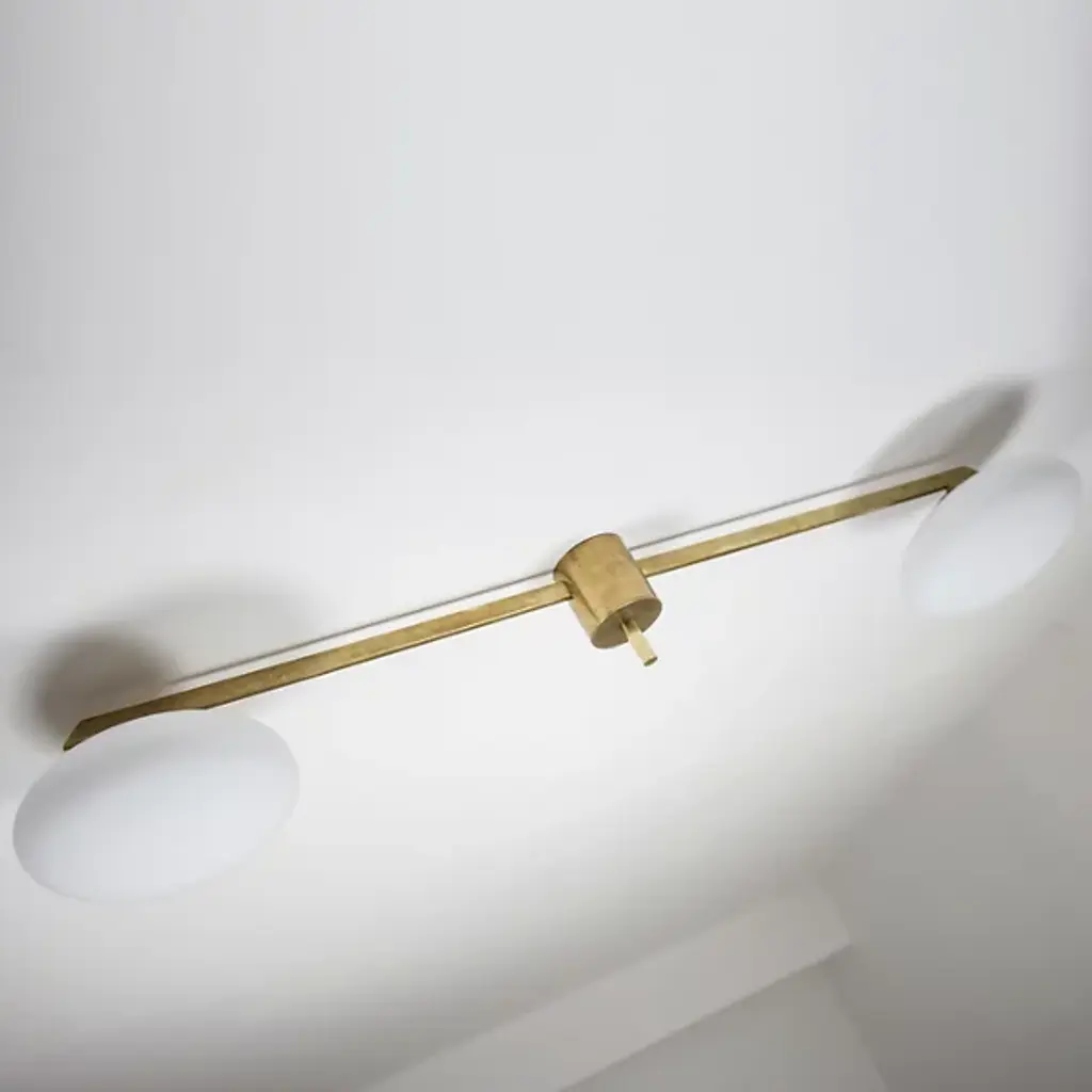Introduce a thoughtful, graceful, and versatile display into your spaces with the Italian mid-century-inspired design of the Stella Snooker Wall / Flushmount from Design For Macha. The piece proudly showcases Design For Macha's artisan-crafted approach. It welcomes use in tight spaces over walls or ceilings through its compact brass body. The body produces a pair of arms that naturally guide the eye to smile-worthy shades. These Murano opaline glass globes extend a generous glow with uniformity and comfort.