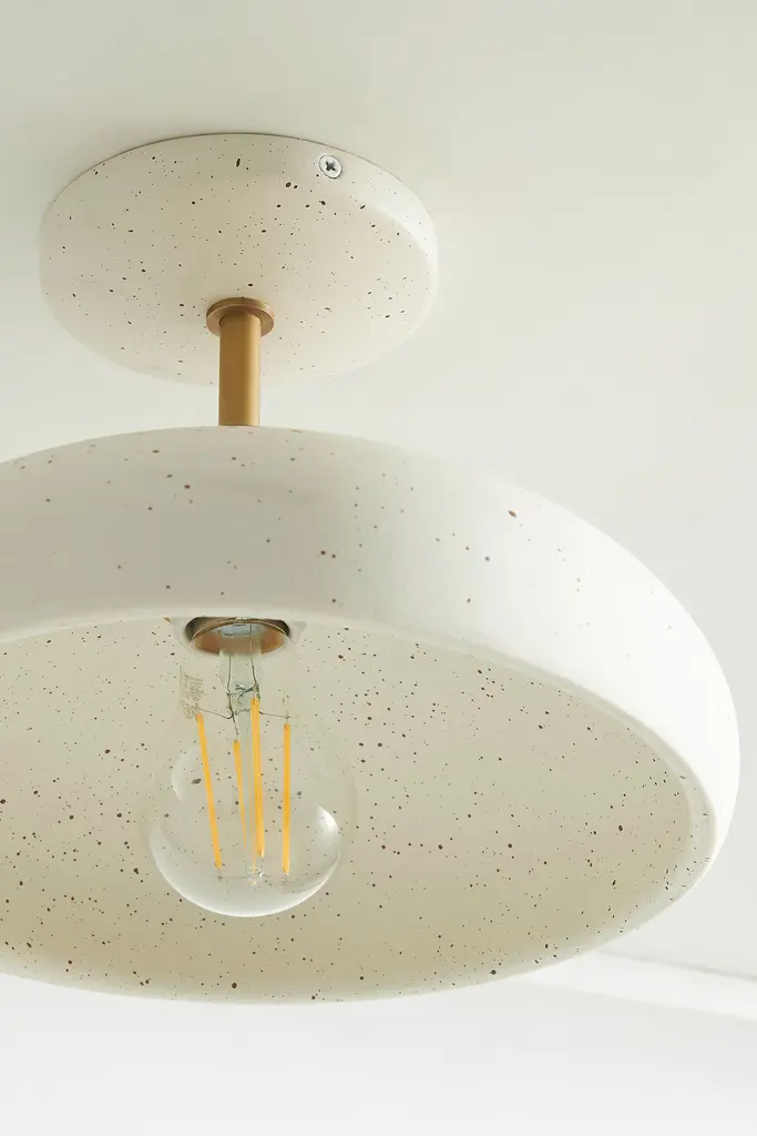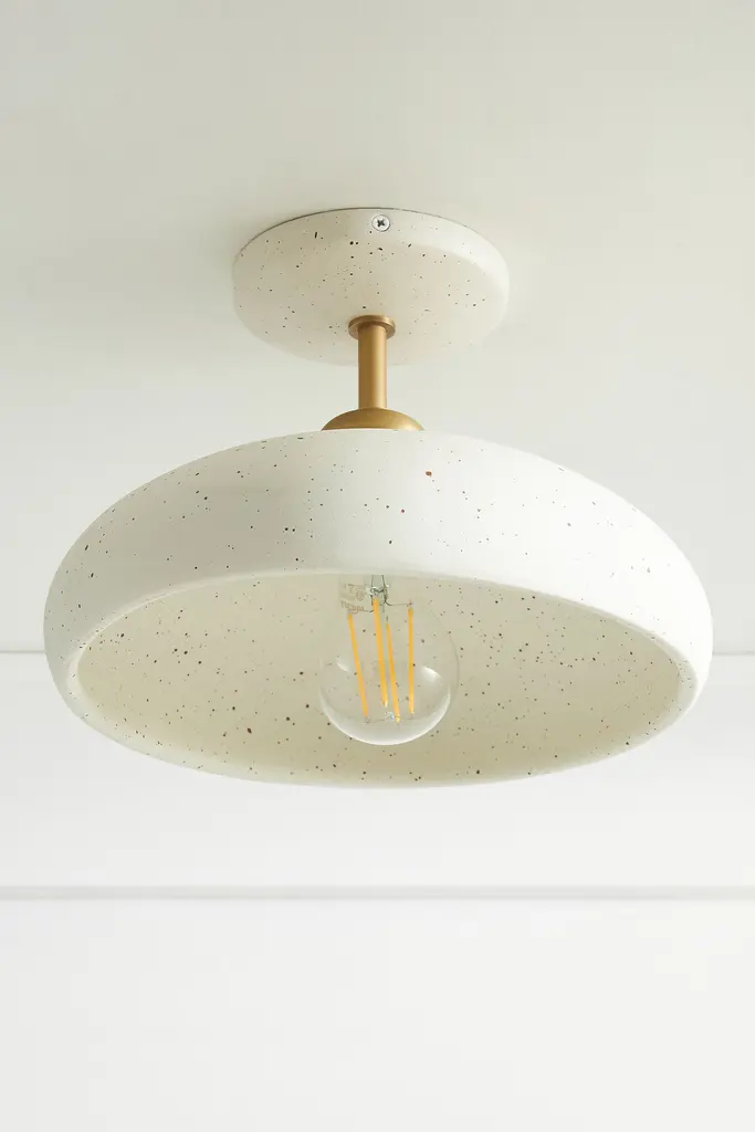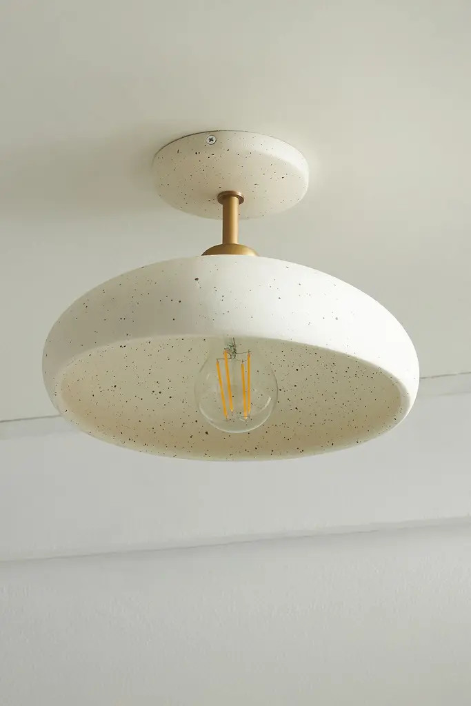 Featuring a handcrafted ceramic shade with a speckled glaze finish, this flush mount lends an artisanal touch to a bathroom, bedroom, or hall. This item is UL listed, meaning it has been tested and approved to meet the government-regulated safety standards for the USA. Use with electrical outlets 110-120v or lower, as anything higher can cause fire or injury. If you're purchasing this item for use outside of the United States, employ the adapter and voltage converter suited for your country.