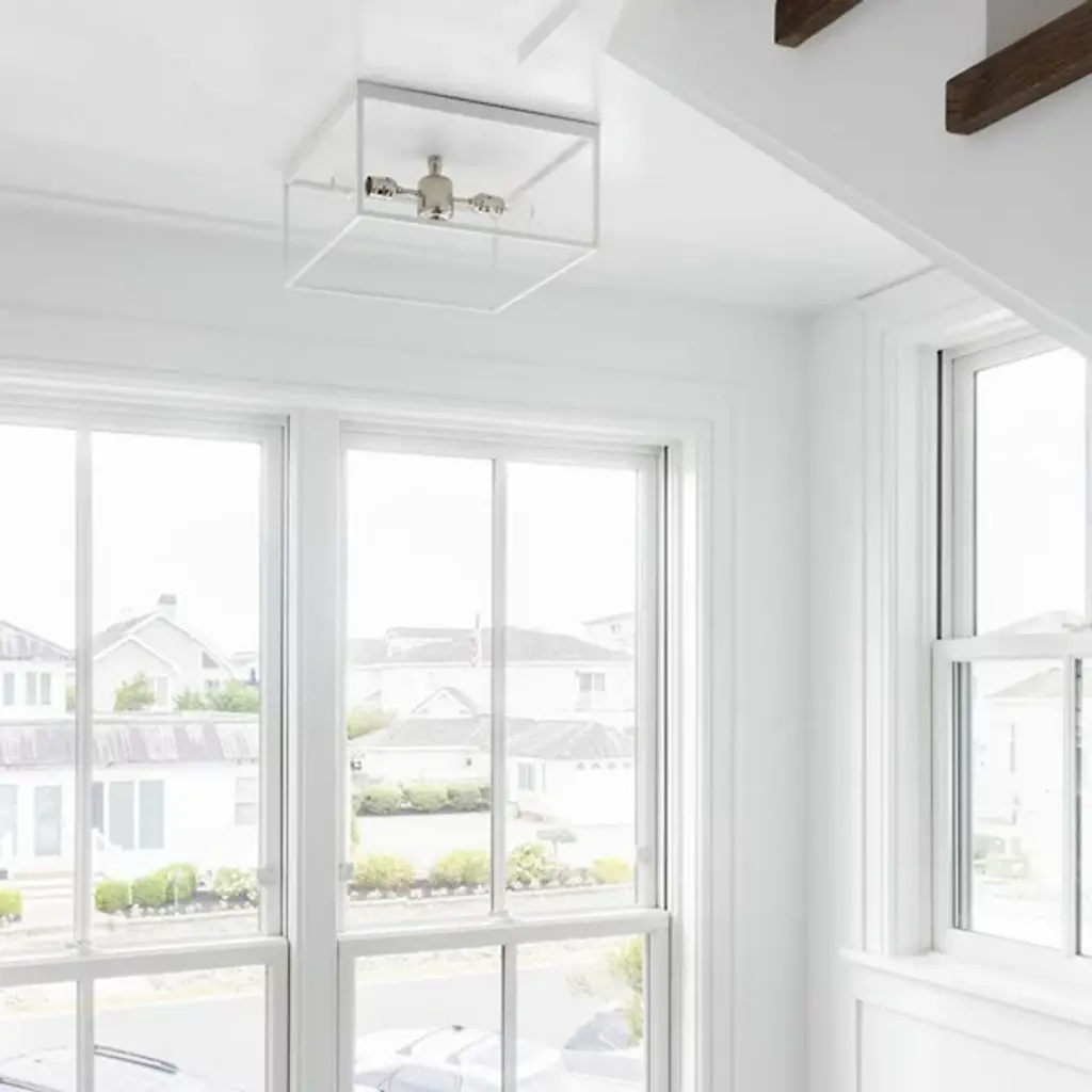 The Stone Harbor Flushmount from Wildwood by Megan Gorelick Interiors serves as a practical lighting solution for multiple areas throughout a home. This versatile fixture works equally well in foyers, bathrooms, closets, and hallways without feeling out of place. Its clean lines paired with nickel accents create a straightforward look that complements your existing décor. This flushmount serves as a functional overhead lighting that maintains a certain level of refinement. Its thoughtful proportions make it suitable for various room sizes without feeling too dominant or too minimal.