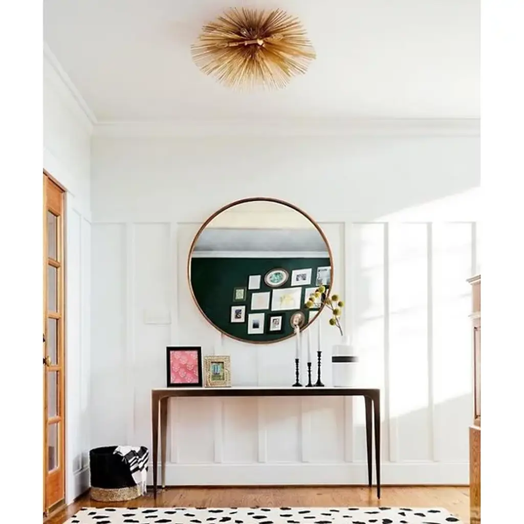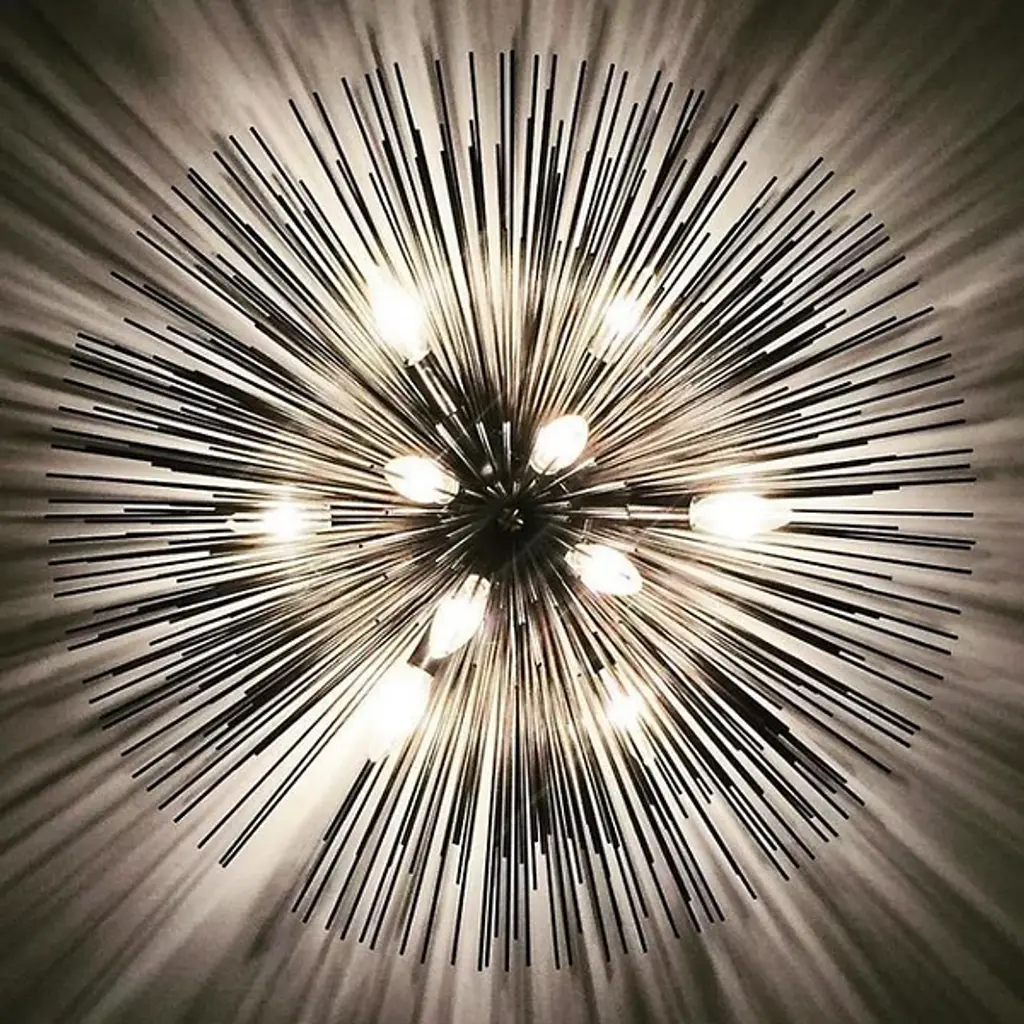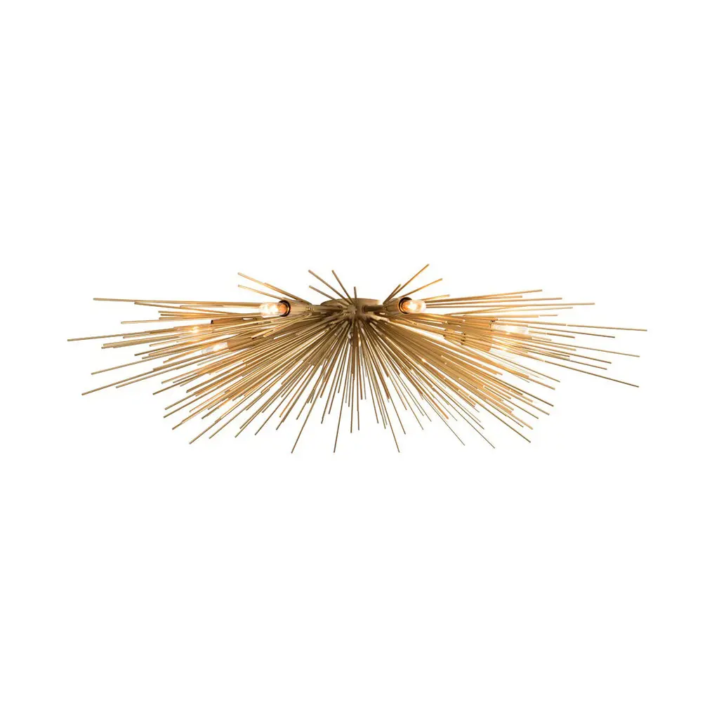 Bursting with personality, the Strada Flushmount by Visual Comfort Signature, formerly known as Visual Comfort, is a captivating centerpiece fit for any living space. Its explosive silhouette features a series a thin metal rods which extend from a central spherical hub. Once lit, the fixture produces a unique, dynamic effect that shimmers like a distant star as your perspective changes.