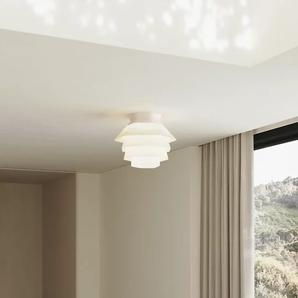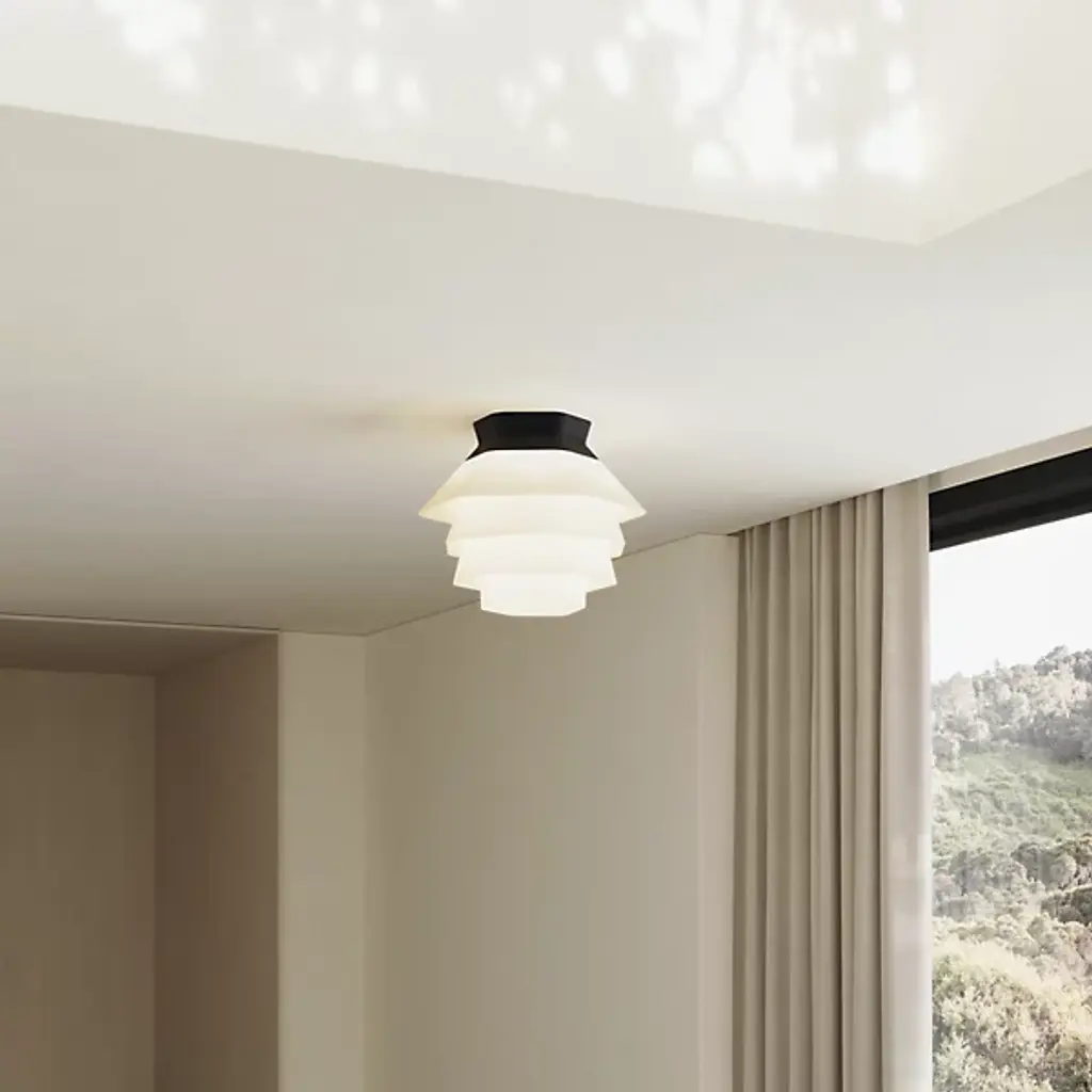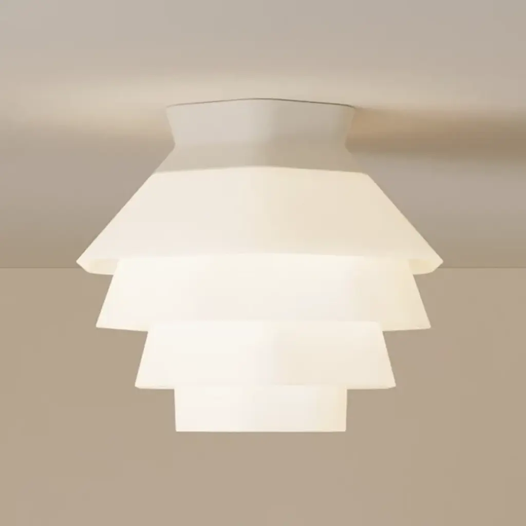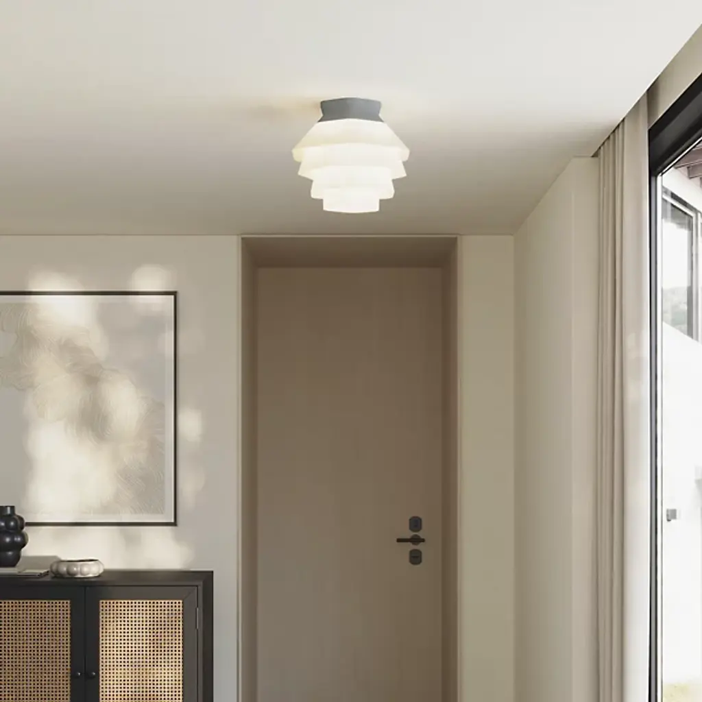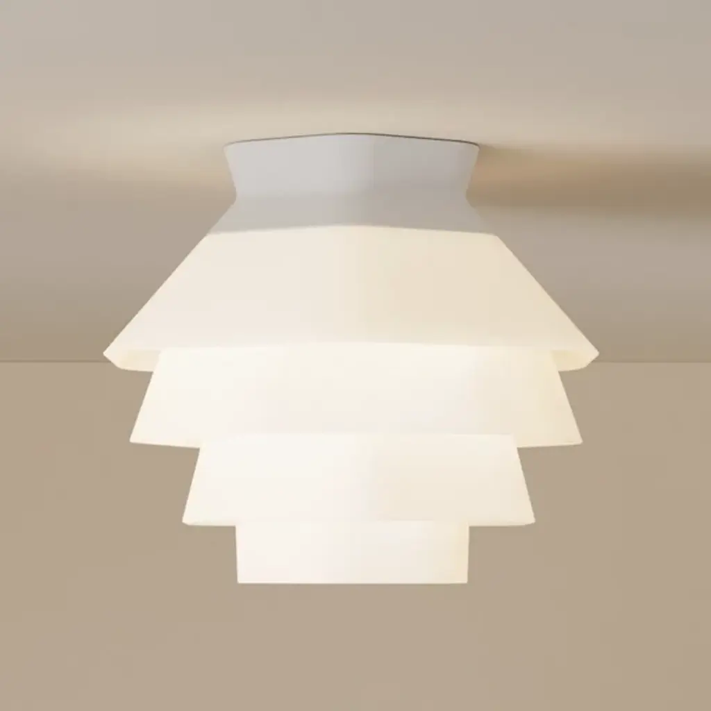 The Strata LED Flushmount from Gantri features an array of faceted shapes that combine to create a soft, inviting atmosphere. The Filippo Mambretti Design Studio drew upon rock formations across landscapes to create this stunning light fixture. Its shade is made to order and 3D-printed from a translucent, plant-based polymer at Gantri's digital factory in California. The shade gentles the glow, transmitting a warm wash of light below, with its folds and facets standing out as a dreamy centerpiece for the ceiling.